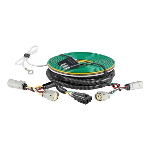Connects a towed vehicle to an RV using a standard 4-way flat trailer plug