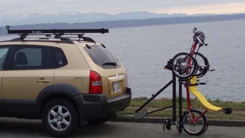 Trike positions can be reconfigured quickly and easily to carry two-wheelers.