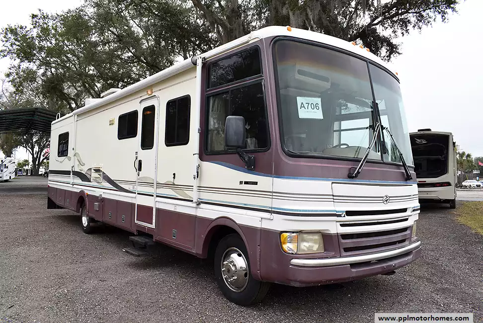 This 1999 Pace Arrow by Fleetwood 37S has a 1 Slide-out, Onan Gas Generator, 2 Ducted Air Conditioners, Levelers, Double Door Gas/110v Dometic Refrigerator, In-Fridge Ice Maker, Main/Slide Awnings, Backup Camera, 2 TVs, Microwave, Oven