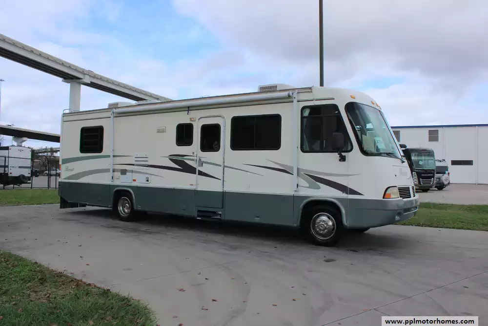 This 2001 Pursuit 3205FS is a mid-sized coach combining road-trip drivability with residential-style living space and amenities, comfortable for family vacations or extended travel. Features Include...V10 Ford Engine On a Ford Chassis, 1 Slide-out, Onan Gas Generator, 2 Ducted Air Conditioners, Levelers, Double Door Gas/110v Norcold Refrigerator, In-Fridge Ice Maker, Automatic Main Awning, Backup Camera, Heated Tanks, TV, Outside Shower, Microwave, 3 Burner Range, and Oven.