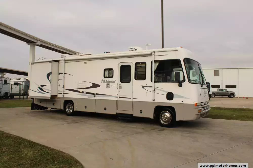 This 2001 Allegro Bus by Tiffin 31DA represents a combination of luxury and practicality in a compact motorhome. With its well-crafted interior, thoughtful design, and Tiffin's commitment to quality, this model is suitable for those who appreciate a refined RV experience in a more manageable size.Features Include...Has a 6.8l V-10 Ford Engine On a Ford Chassis, 2 Slide-outs, Onan Gas Generator, 2 Ducted Air Conditioners, Levelers, Double Door Gas/110v Dometic Refrigerator, Main/Slide Awnings, Backup Camera, 2 TVs, Outside Shower, Convection Microwave, 3 Burner Range,and Oven.It Reflects the renowned craftsmanship and luxury associated with the Tiffin brand.Strikes a balance between compactness and comfort, making it an ideal choice for those seeking a manageable yet upscale RV experience.