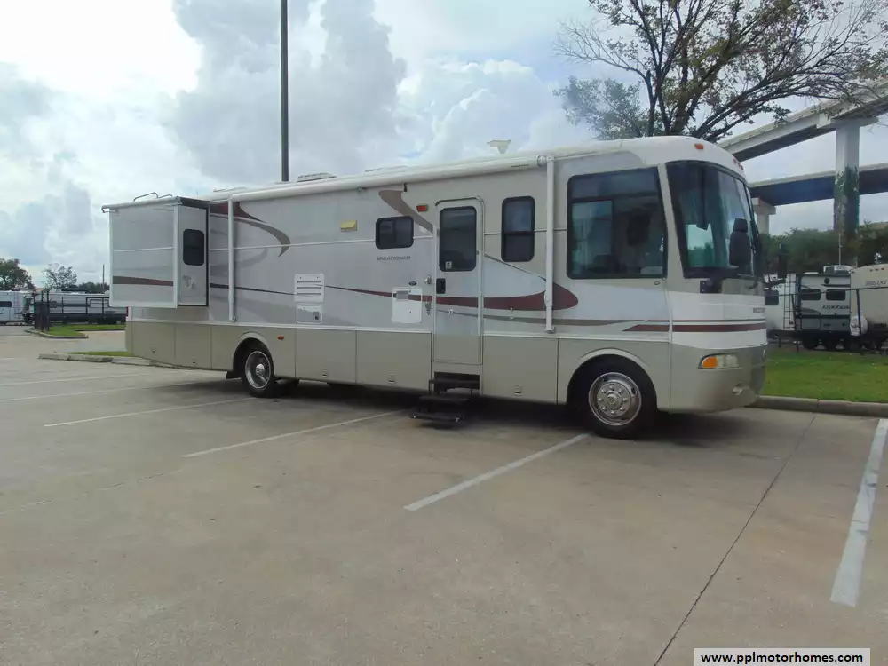 This 2003 Holiday Rambler Vacationer 34PBD is a motorhome known for its quality construction and spacious design,making it an excellent choice for long trips or full-time RV living.Comforts Include...8.1l V8 Chevy Engine On a Workhorse Chassis, Spring/Air Suspension, 2 Slide-outs, Onan Gas Generator, 2 Ducted Air Conditioners, Levelers,Life Time Roof,New AC's,New Air Bags,New Kitchen Faucet, Double Door Gas/110v Norcold Refrigerator, In-Fridge Ice Maker, Main/Slide Awnings, Backup Camera, 2 TVs, Outside Shower, Convection Microwave,and 2 Burner Range.With its combination of space, comfort,and performance,this motorhome is a great choice for both new and experienced RVers.
