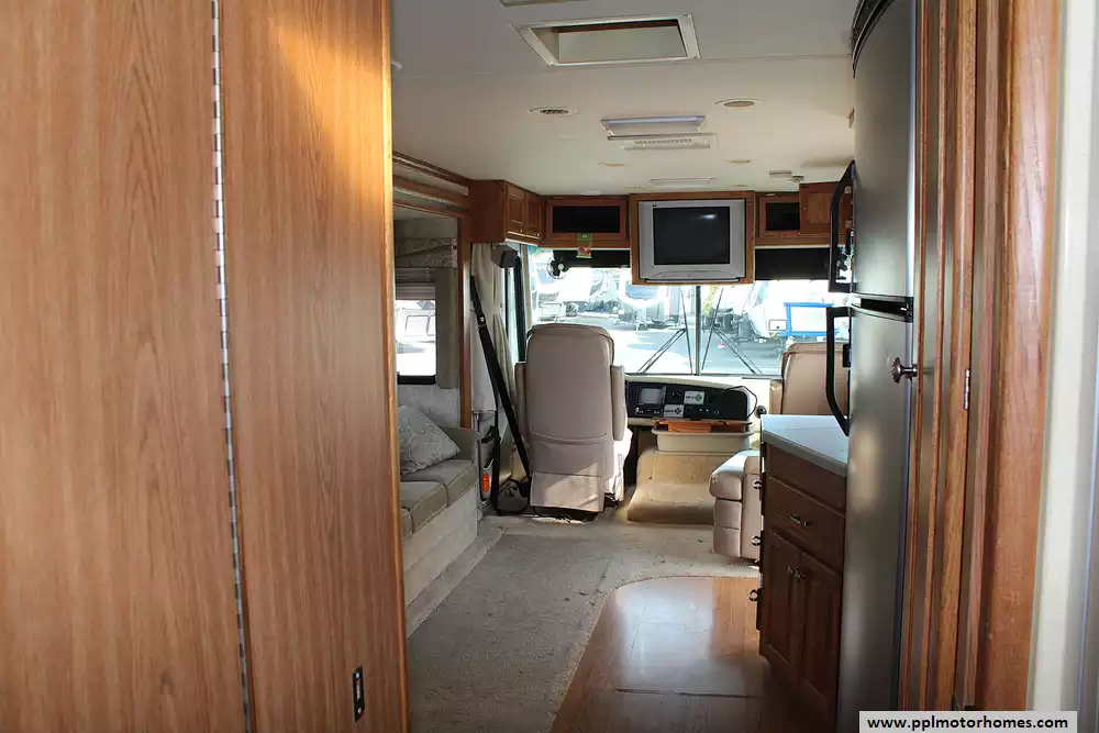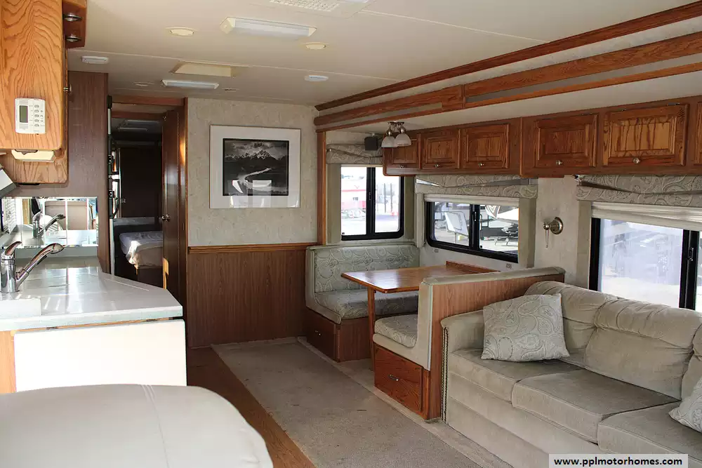 This unit is being sold as is, making it an excellent opportunity for someone who appreciates a great deal and doesn't mind handling a few projects. The awning arm is broken, and the auto-leveling system is not working, but the core coach remains a strong foundation for enjoyment and value. For buyers willing to put in a little time and care, this motorhome represents an affordable way to get into a spacious Class A with features typically found in higher-priced units.