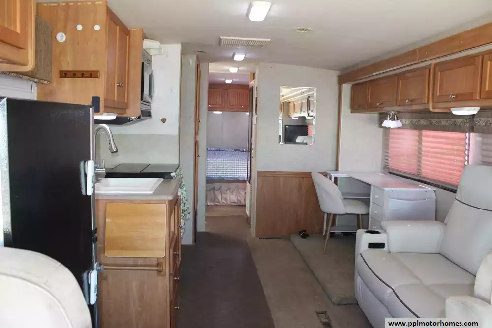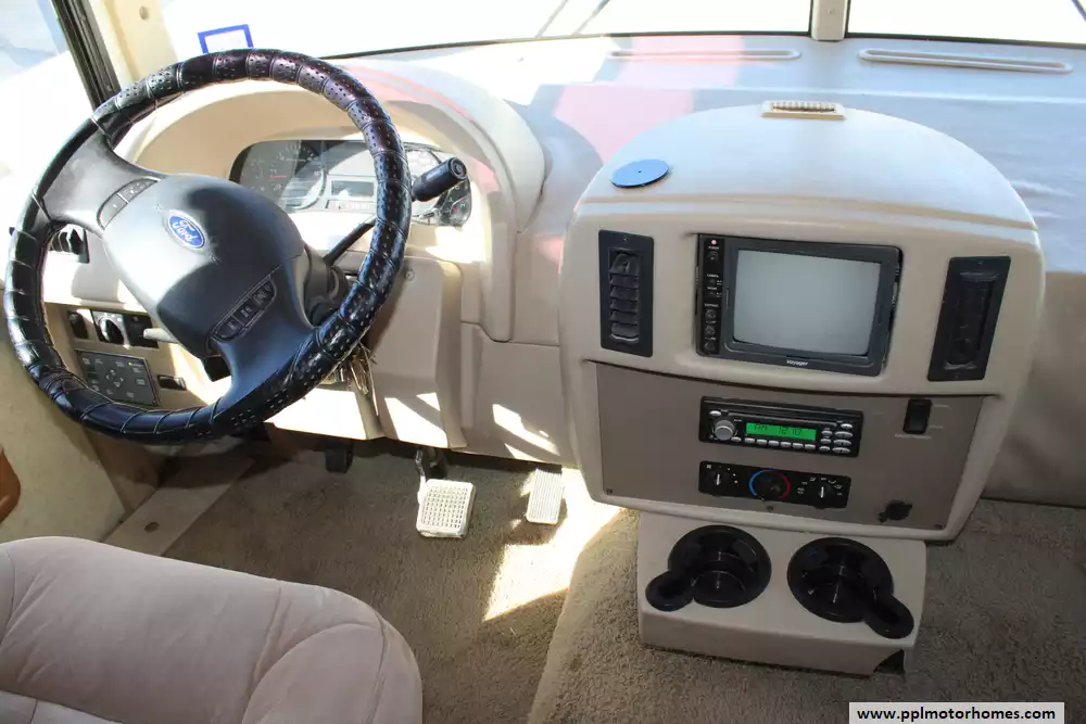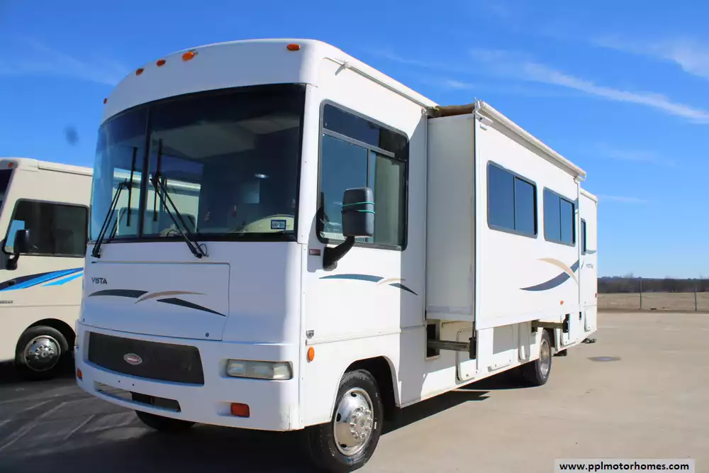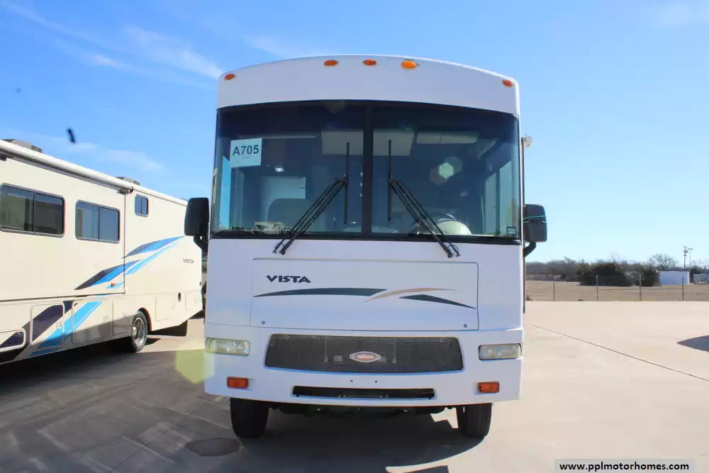 The 2007 Winnebago Vista 30B is a well-appointed Class A motorhome that blends manageable size with full-featured comfort, ideal for couples or small families hitting the road. At about 30 feet long with a single large slide-out, this floorplan opens up a front living area with theater seating and desk, a central kitchen with range, microwave and refrigerator, a split bathroom, and a private rear bedroom with a queen-size bed. Built on a reliable Fordr F-53 chassis and typically powered by a gas engine like the 6.8 L V10 with automatic transmission, the Vista 30B offers ample storage inside and out, ducted air conditioning, and practical conveniences such as a manual patio awning, cabinetry throughout, and plenty of exterior compartments for gear, making it a compelling mix of livability and value in a classic Winnebago package. This Vista is being sold entirely as is. Please ask about known conditions.