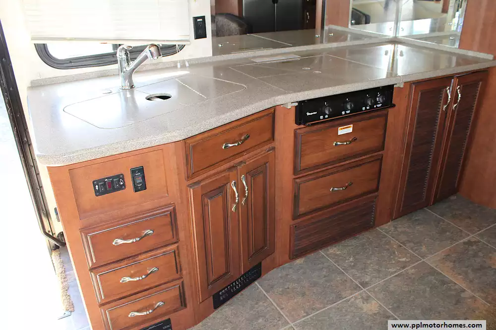 (Floor plan is NOT drawn to scale. Length of vehicle is approximate. Buyer is responsible for verifying actual length. PPL Motor Homes compiled this list of features, specifications, equipment and options as a guide. No representation or warranties, either express or implied, are made as to the accuracy of the information herein. Please verify for yourself all items listed before purchase.)
