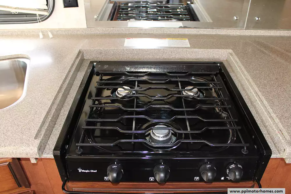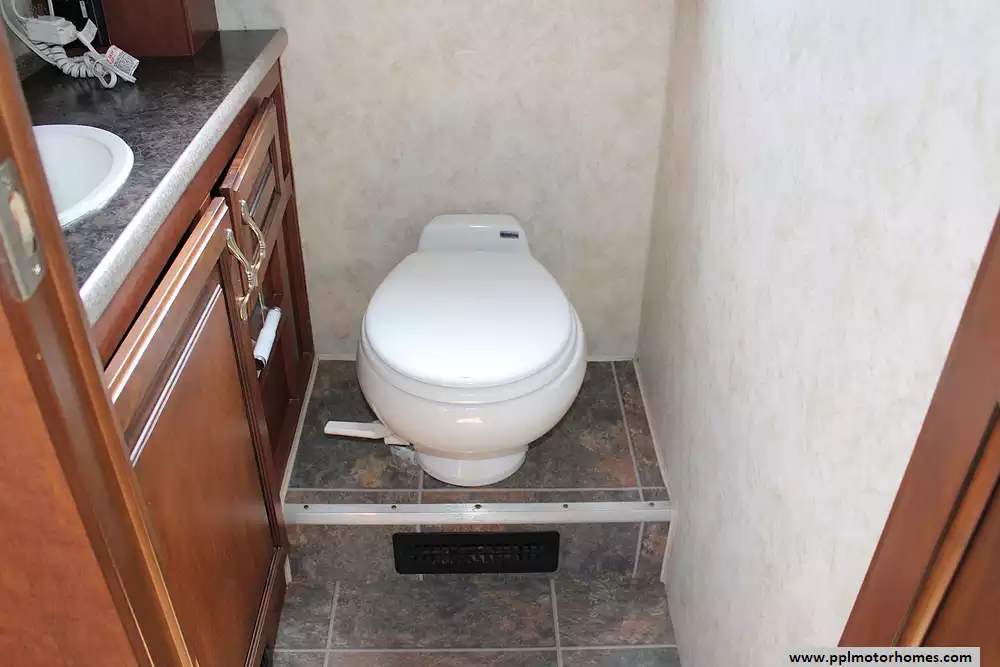 With sleeping accommodations for up to six people, this motorhome ensures that everyone enjoys first-class comfort. A private master suite with a walk-around queen bed provides a peaceful retreat, while the convertible sofa and dinette transform easily into additional sleeping spaces. The fully equipped kitchen makes every meal a pleasure, and the half-bath up front adds convenience for guests-no more waiting in line for morning routines. From the climate-controlled interior to the generous storage throughout, every feature is designed to make extended journeys effortless and enjoyable.