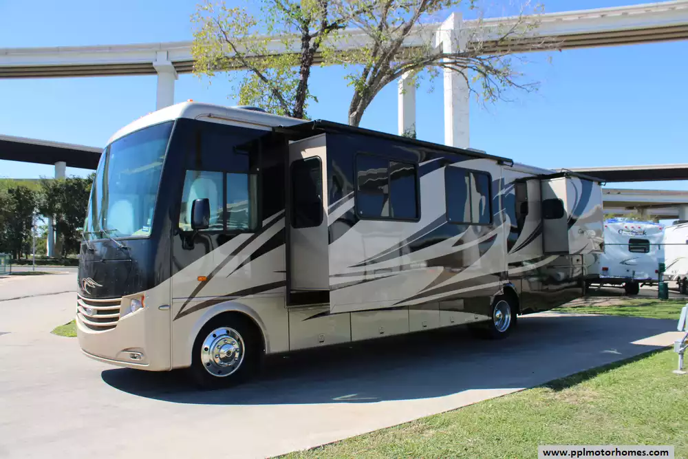 Specs: Length: 36.3 ft., Width: 7.11 ft., Height: 12.11 ft., Interior Height: 7 ft., Fuel Capacity: 80 gal., Total Fresh Water Tank Capacity: 75 gal., Total Gray Water Tank Capacity: 60 gal., Total Black Water Tank Capacity: 40 gal., Total Number of Propane Tanks: 1, Total Propane Tank Capacity: 25 lbs.