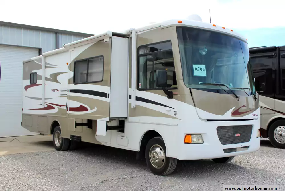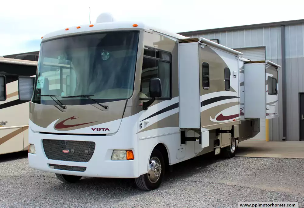 This 2012 Winnebago Vista 30T has a V10 6.8l Ford Engine On a Ford 350 Chassis, 3 Slide-outs, Onan Gas Generator, Levelers, Double Door Gas/110v Norcold Refrigerator, Automatic Main Awning And Slide Awning, Backup Camera, Outside Stereo, 2 TVs, Microwave, 3 Burner Range, Oven