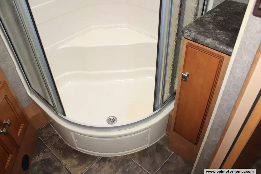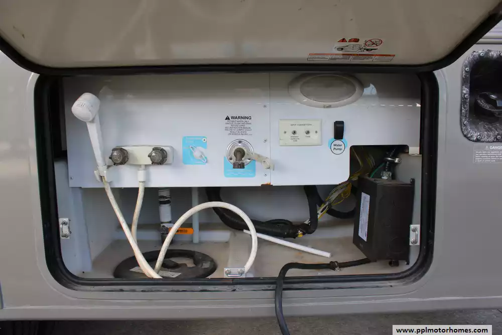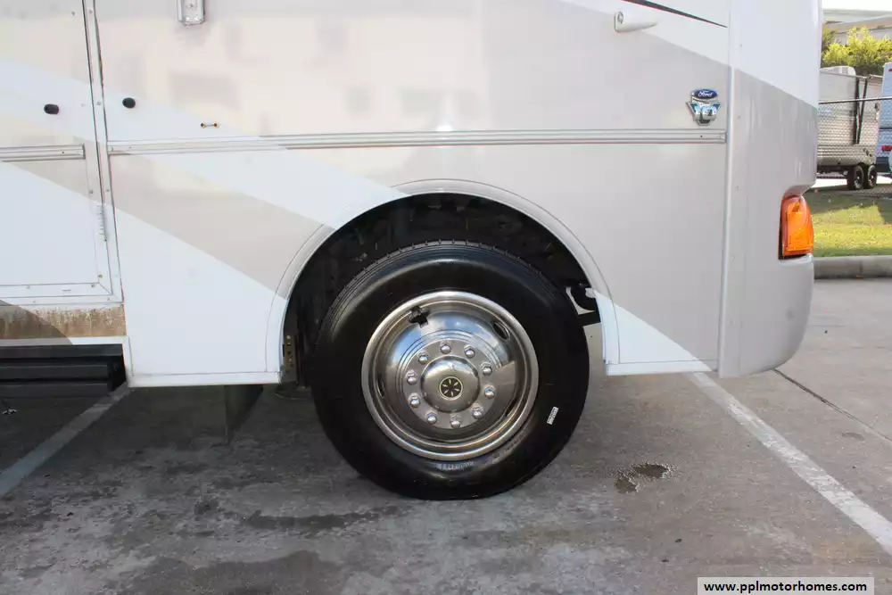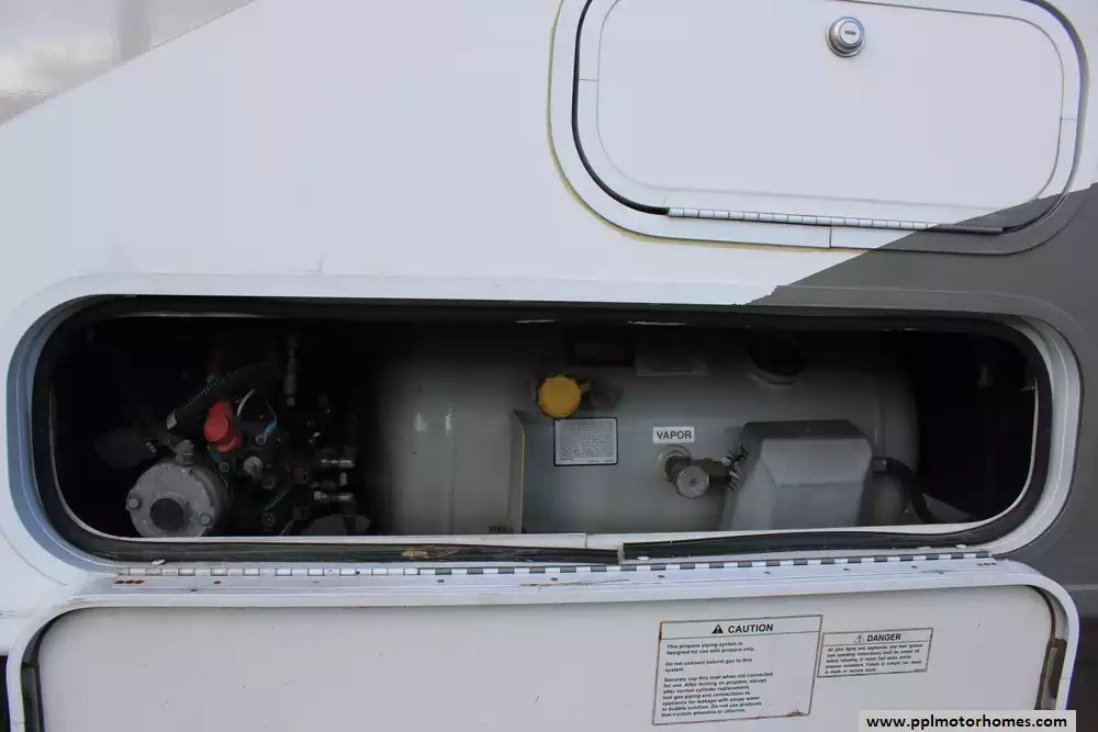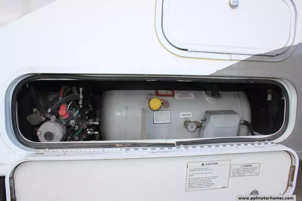 Specs: Length: 28.3 ft., Width: 8.5 ft., Height: 12.2 ft., Interior Height: 6.8 ft., Interior Width: 8 ft., Fuel Capacity: 80 gal., Total Fresh Water Tank Capacity: 84 gal., Total Gray Water Tank Capacity: 53 gal., Total Black Water Tank Capacity: 43 gal., Number of Propane Tanks: 1, Total Propane Tank Capacity: 18 gal.