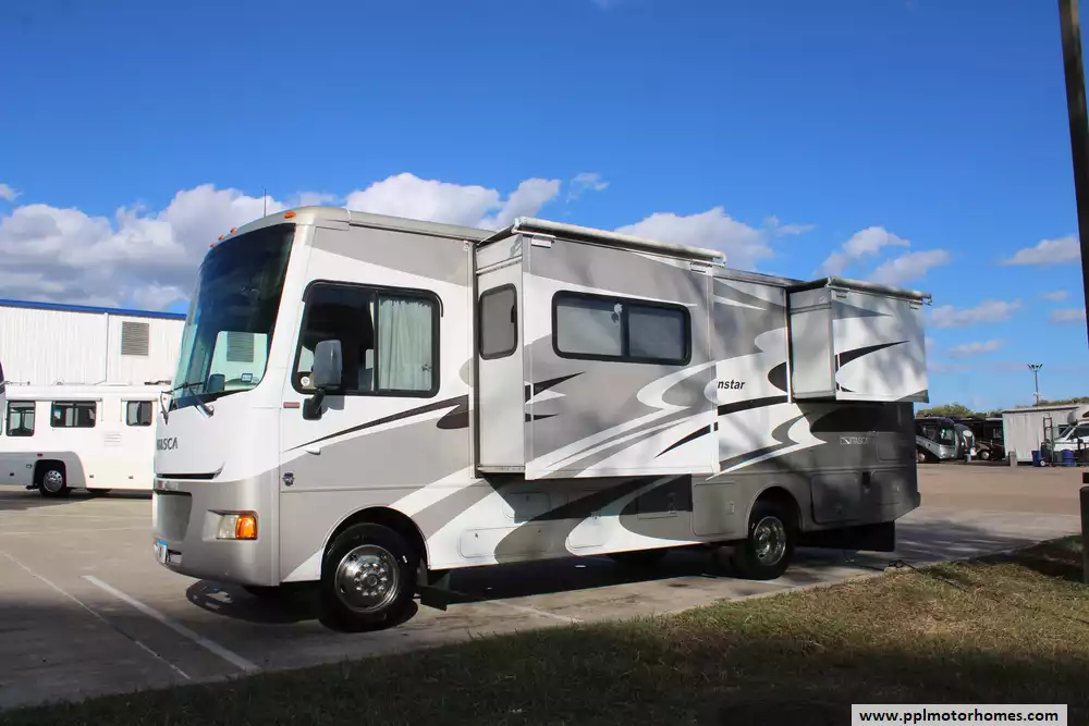 This 2013 Sunstar 27N is a compelling option in the Class A gas coach category. It balances functionality and manageability. Features Include...6.8 V10 Ford Engine On a Ford Chassis, Onan Gas Generator, 1 Ducted Air Conditioner, Levelers, Double Door Gas/110v Norcold Refrigerator, Automatic Main Awning And Slide Awning, Backup Camera, 2 TVs, Outside Shower, Convection Microwave, and 3 Burner Range.