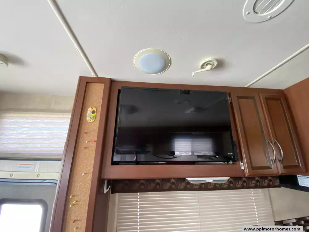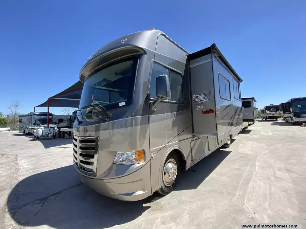 This fully-equipped motorhome is ready for the road with a suite of features designed for convenience and reliability. The kitchen includes a three-burner range, oven, microwave, and a Norcold double-door refrigerator that runs on both gas and electric. Stay comfortable in any climate with ducted air conditioning and an Onan gas generator for off-grid power, while the automatic main awning and integrated levelers make campsite setup effortless. For entertainment and safety, the coach features two TVs, a DVD player, and a backup camera, along with an outside shower for added utility. With its durable fiberglass body and steel roof construction, this ACE 30.1 offers a perfect balance of quality and functionality for your next great escape.