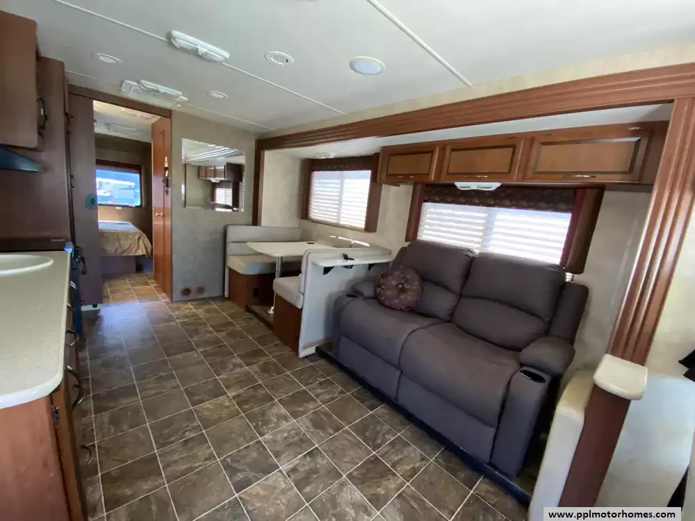 (Floor plan is NOT drawn to scale. Length of vehicle is approximate. Buyer is responsible for verifying actual length. PPL Motor Homes compiled this list of features, specifications, equipment and options as a guide. No representation or warranties, either express or implied, are made as to the accuracy of the information herein. Please verify for yourself all items listed before purchase.)