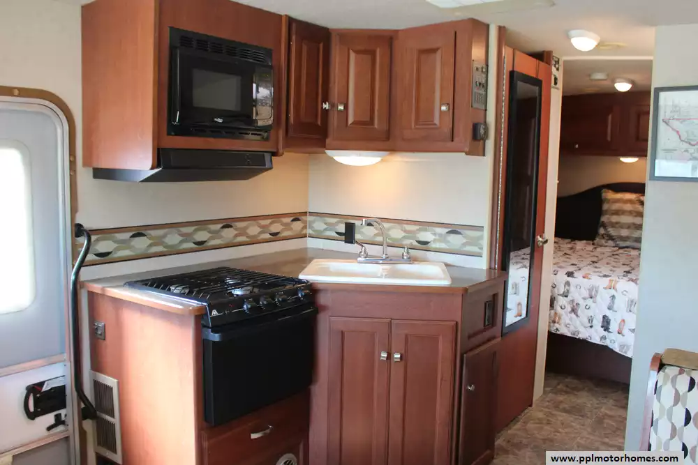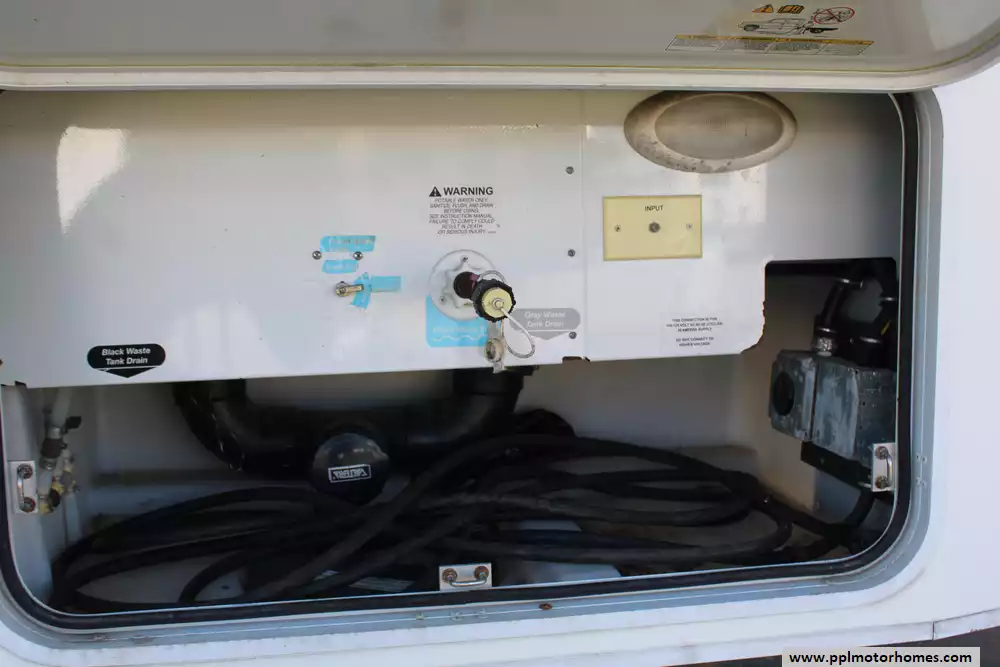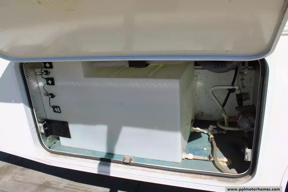 Specs: Length: 26.11 ft., Width: 8.5 ft., Height: 12.1 ft., Interior Height: 6.3 ft., Interior Width: 8 ft., Fuel Capacity: 80 gal., Total Fresh Water Tank Capacity: 60 gal., Total Gray Water Tank Capacity: 38 gal., Total Black Water Tank Capacity: 43 gal., Number of Propane Tanks: 1, Total Propane Tank Capacity: 18 lbs.