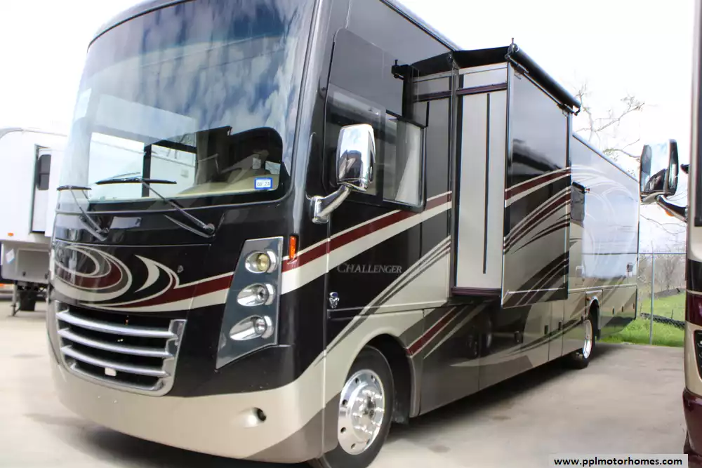 This 2014 Thor Challenger 37KT has a V-10 6.8l N/A Engine, 3 Slide-outs, Onan Gas Generator, 2 Ducted Air Conditioners, Levelers, Double Door 110v Residential Whirlpool Refrigerator, In-Fridge Ice Maker, Automatic Main Awning And Slide Awning, Washer/Dryer Connections, Backup Camera and Side Cameras, Satellite Dish, Outside Entertainment System with TV, 3 TVs, Satellite Radio, Outside Shower, Fireplace, Convection Microwave, 3 Burner Range