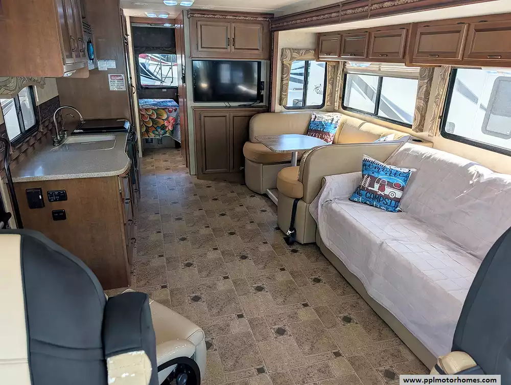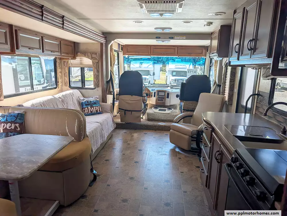 (Floor plan is NOT drawn to scale. Length of vehicle is approximate. Buyer is responsible for verifying actual length. PPL Motor Homes compiled this list of features, specifications, equipment and options as a guide. No representation or warranties, either express or implied, are made as to the accuracy of the information herein. Please verify for yourself all items listed before purchase.)