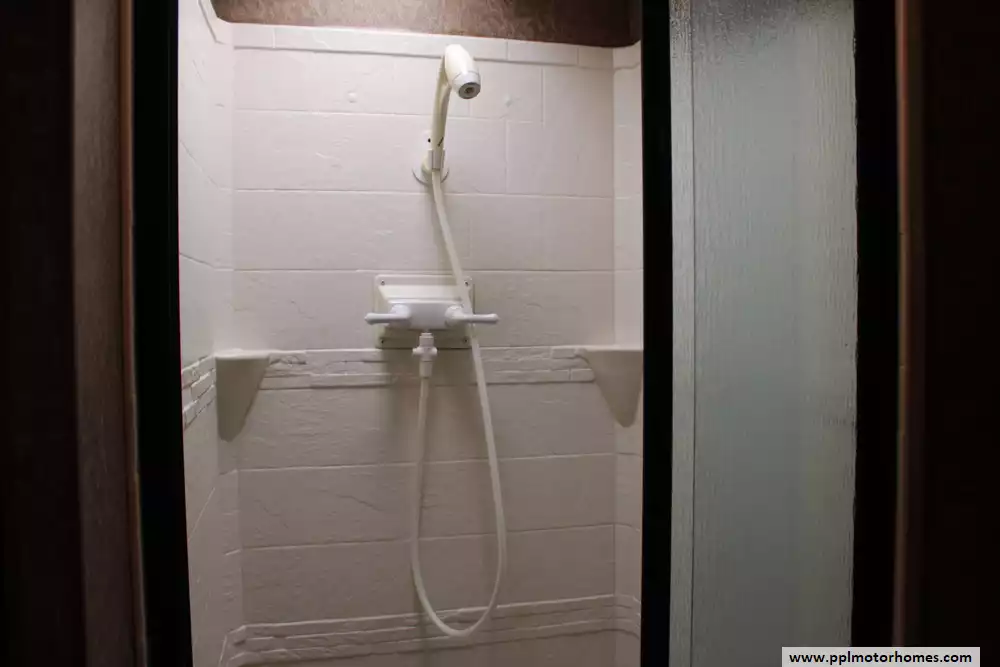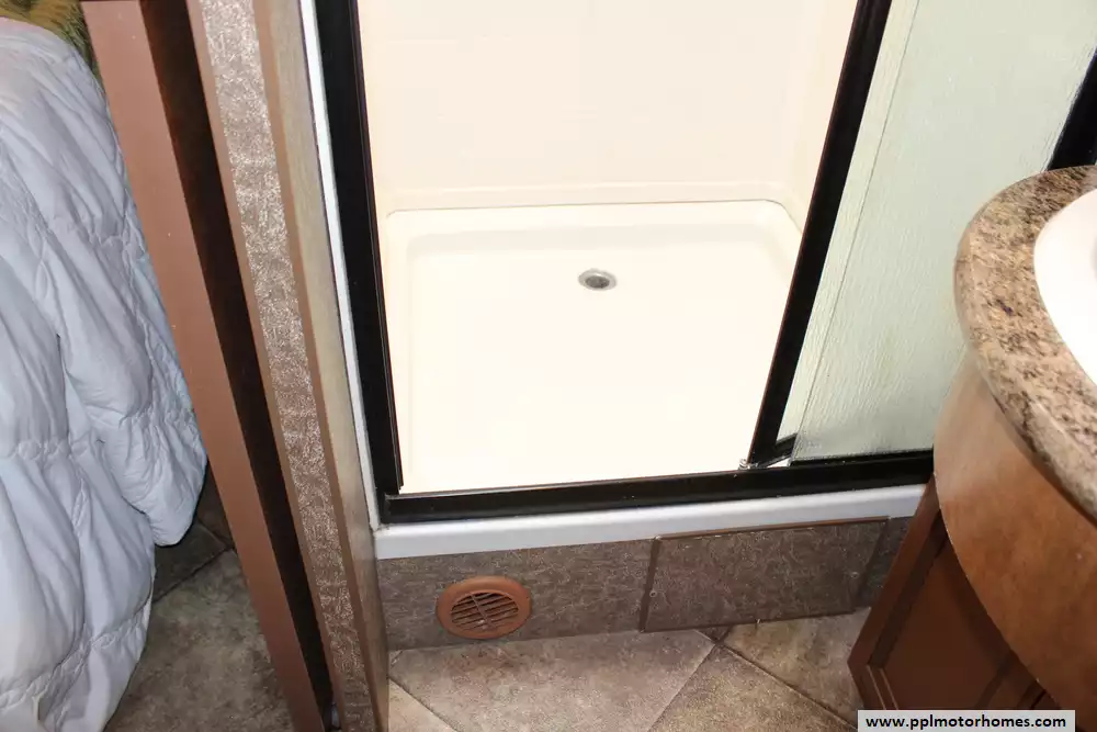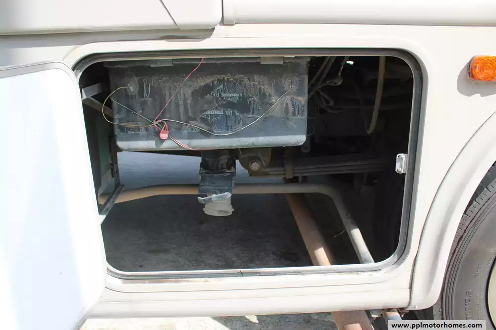 Specs: Length: 35.42 ft.,Width: 8.25 ft., Height: 11.92 ft.,Interior Height: 6.83 ft, Fuel Capacity: 80 gal.,Total Fresh Water Tank Capacity: 50 gal.,Total Gray Water Tank Capacity: 44 gal.,Total Black Water Tank Capacity: 75 gal.,Total Number of Propane Tanks: 1.,Total Propane Tank Capacity: 88 lbs.