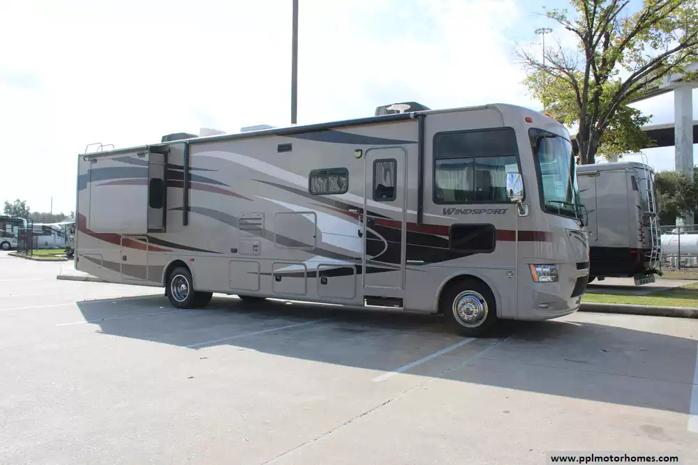 This 2014 Windsport 34E is a spacious and well-designed motorhome,perfect for families or couples looking to travel in comfort and style.It delivers reliable performance and power,making it a great choice for long-distance trips and cross-country adventures.Features Include...V10 Ford Engine On a Ford Chassis, 2 Slide-outs, Onan Gas Generator, 2 Ducted Air Conditioners, Levelers, Double Door Norcold Refrigerator, Automatic Main Awning And Slide Awning, Backup Camera, Heated Tanks, 3 TVs, DVD Player, Satellite Radio, Outside Shower, Microwave, 3 Burner Range,and Oven.This motorhome is designed for both comfort and practicality,offering a great balance of luxury and functionality for any RV adventure.