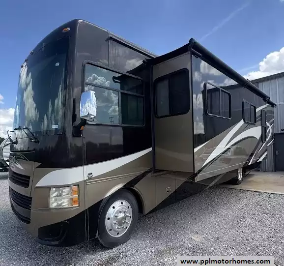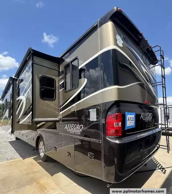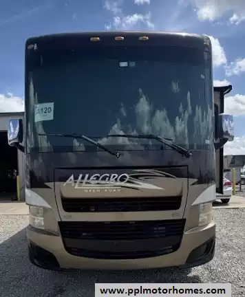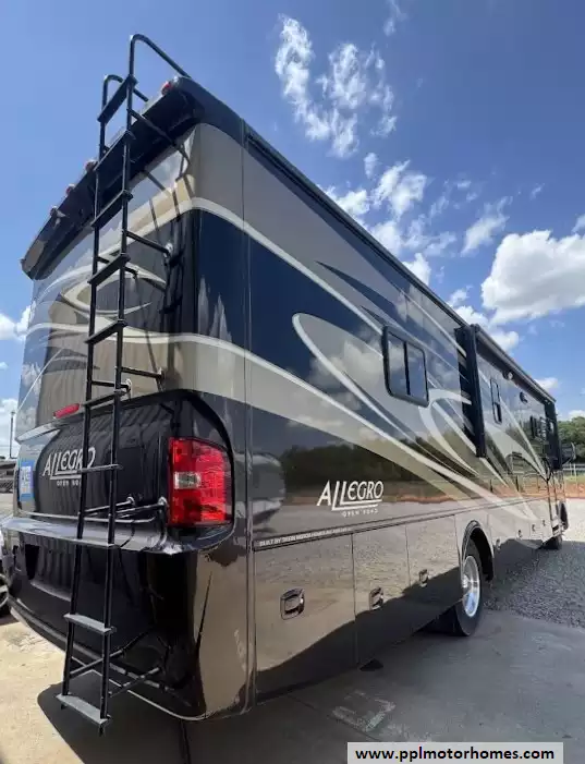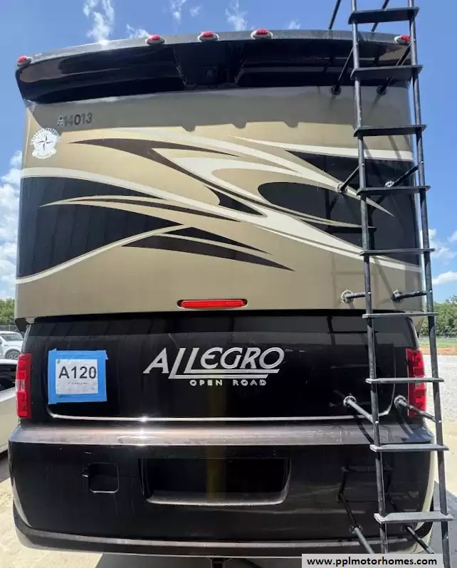 This 2014 Allegro by Tiffin 36LA has a V10 Ford Engine On a Ford Chassis, 2 Slide-outs, Onan Gas Generator, 2 Ducted Air Conditioners, Levelers, 4 Door Gas/110v Dometic Refrigerator, In-Fridge Ice Maker, Automatic Main Awning, Backup Camera, Heated Tanks, 4 TVs, Outside Shower, Fireplace, Microwave, 3 Burner Range, Oven