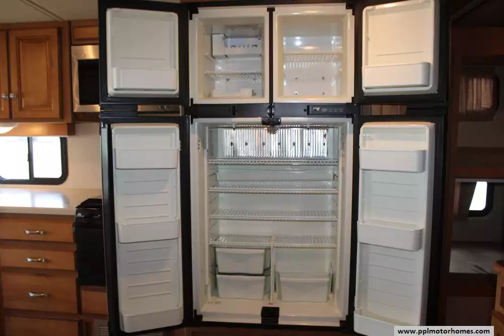 Specs: Length: 36.4 ft., Width: 8.5 ft., Height: 12.6 ft., Interior Height: 6.8 ft., Interior Width: 8 ft., Fuel Capacity: 80 gal., Total Fresh Water Tank Capacity: 93 gal., Total Gray Water Tank Capacity: 46 gal., Total Black Water Tank Capacity: 41 gal., Total Propane Tank Capacity: 18 gal.