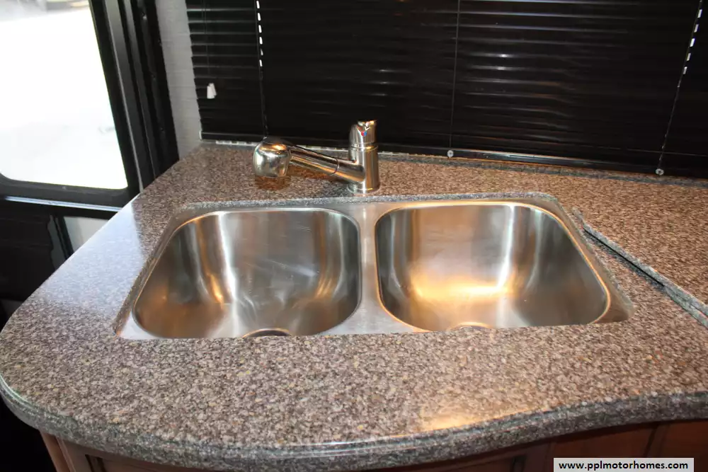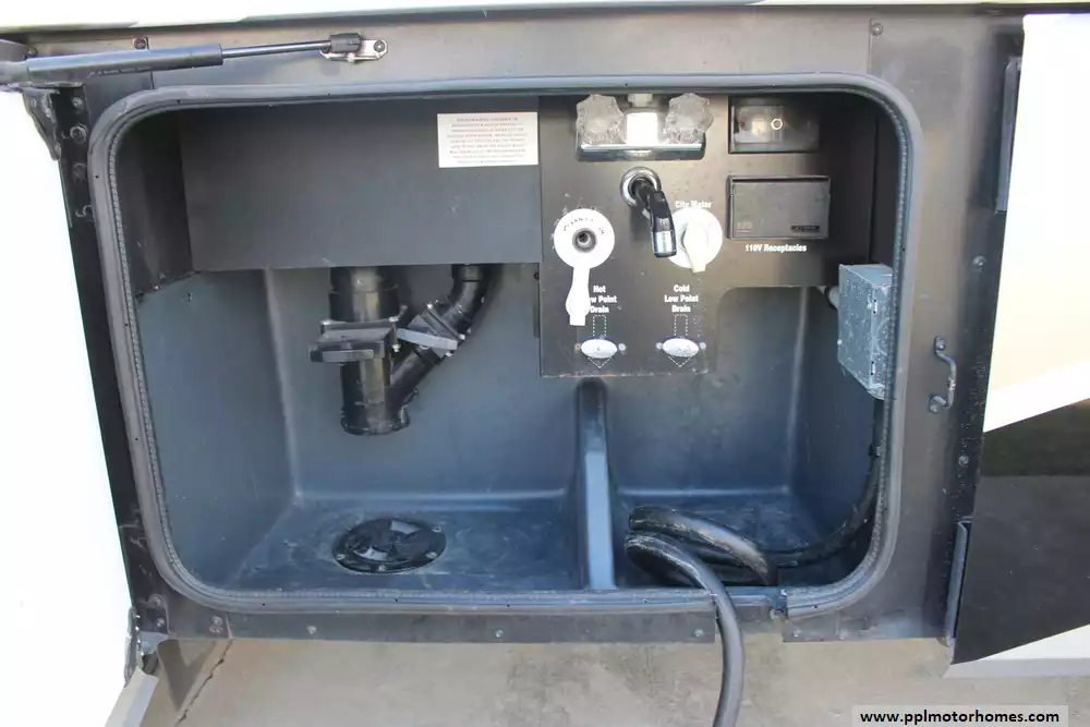 Specs: Length: 37.7 ft., Width: 8.5 ft., Height: 12 ft., Interior Height: 6.58 ft., Interior Width: 8 ft., Fuel Capacity: 80 lbs., Total Fresh Water Tank Capacity: 85 gal., Total Grey Water Tank Capacity: 40 gal., Total Black Tank Capacity: 30 gal., Total Propane Tank Capacity: 20 gal.