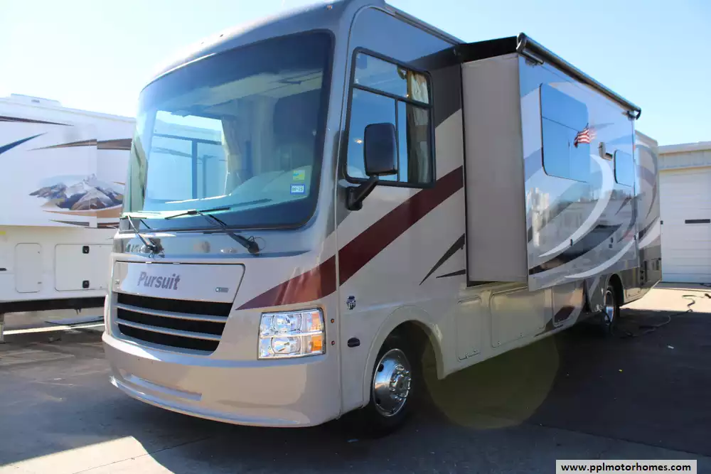 This 2015 Coachmen Pursuit 29SBP Makes For A Great Getaway! Highlights Include... A 6.8L V10 Ford Engine On A Ford Chassis, Added Sumo Springs, 2 Slide-Outs With Slide Toppers, Onan Gas Generator, 2 Ducted Air Conditioners, Frameless Tinted Windows, Powered Overhead Drop-Down Bunk, Automatic Leveling System, Maxxair Vent Cover, Double Door Gas/110v Dometic Refrigerator, Automatic Main Awning And Slide Awning, Backup Camera, Side Cameras, Winegard Roadtrip In-Motion Satellite System, 3 TVs (Including Outside Entertainment System), DVD Player, Convection Microwave, 3 Burner Range, Oven, And More! Enjoy Your Next Adventures In This Pursuit! This Motorhome Is Eligble For PPL's Financing And Extended Protection.