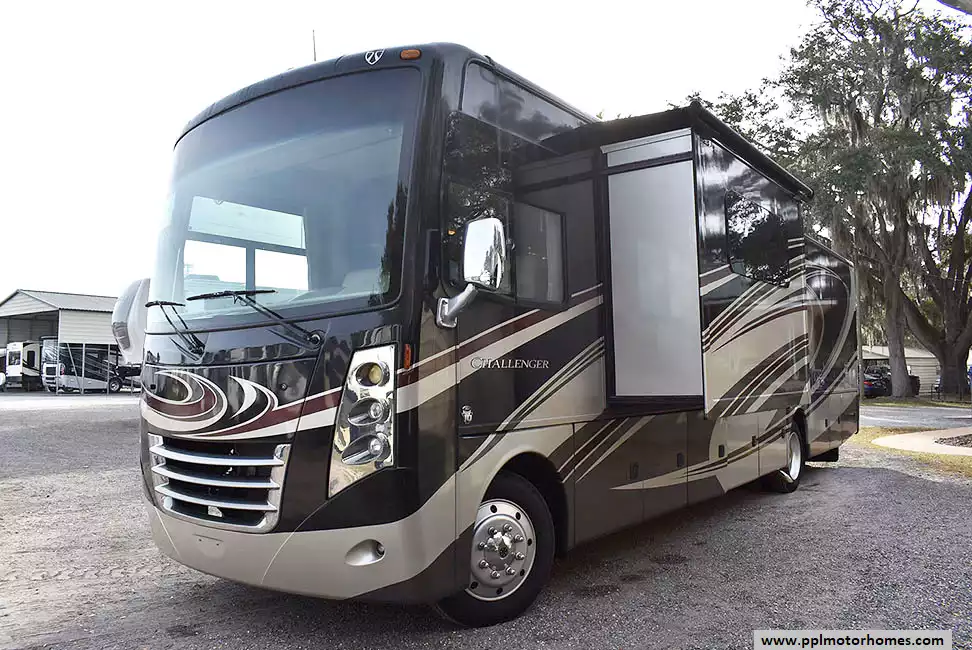 This 2015 Thor Challenger 37GT has a V10 Ford Engine On a Ford Chassis, 3 Slide-outs, Onan Gas Generator, 2 Ducted Air Conditioners, Levelers, Double Door Residential Whirlpool Refrigerator, Automatic Main Awning And Slide Awning, Backup Camera, Heated Tanks, Satellite Receiver, Outside Entertainment System, 3 TVs, DVD Player, Outside Shower, Convection Microwave