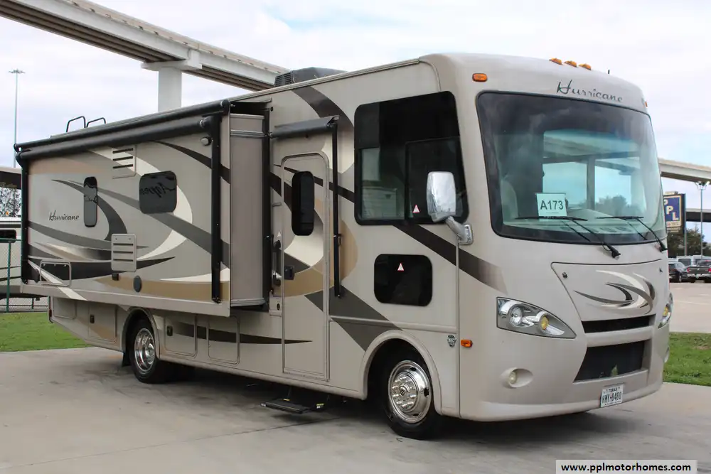 The Time is Right,You've Made the Decision to Live Out Your Dreams In This 2015 Hurricane 27K.Features Include...Has a V10 Ford Engine On a Ford Chassis, 1 Slide-out, Onan Gas Generator, 1 Ducted Air Conditioner, Levelers, Double Door Gas/110v Norcold Refrigerator, Automatic Main Awning And Window/Slide/Door Awnings, Backup Camera, Heated Tanks, Outside Speakers, TV, DVD Player, Satellite Radio, Outside Shower, Microwave, 3 Burner Range,and Oven.Constructed for Full Time Living!Enjoy the Ride!