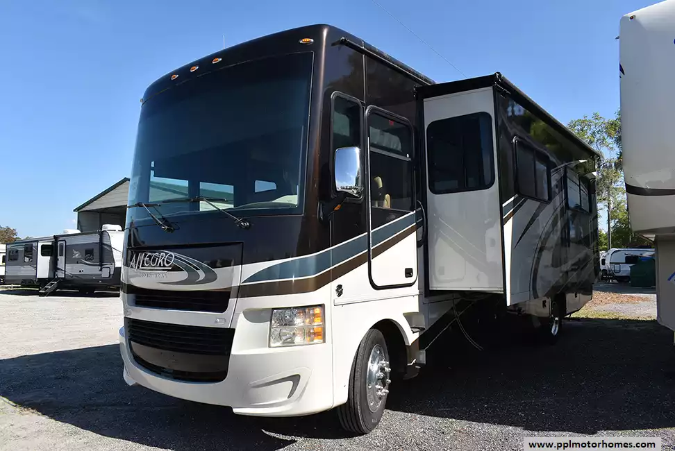 This 2015 Allegro by Tiffin 32SA has a 2 Slide-outs, Onan Gas Generator, 2 Ducted Air Conditioners, Levelers, Double Door Gas Residential Maytag Refrigerator, Automatic Main Awning And Window/Slide Awnings, Backup Camera, GPS System, Satellite Dish, Outside Entertainment System, 3 TVs, DVD Player, Outside Shower, Fireplace, Convection Microwave, 3 Burner Range