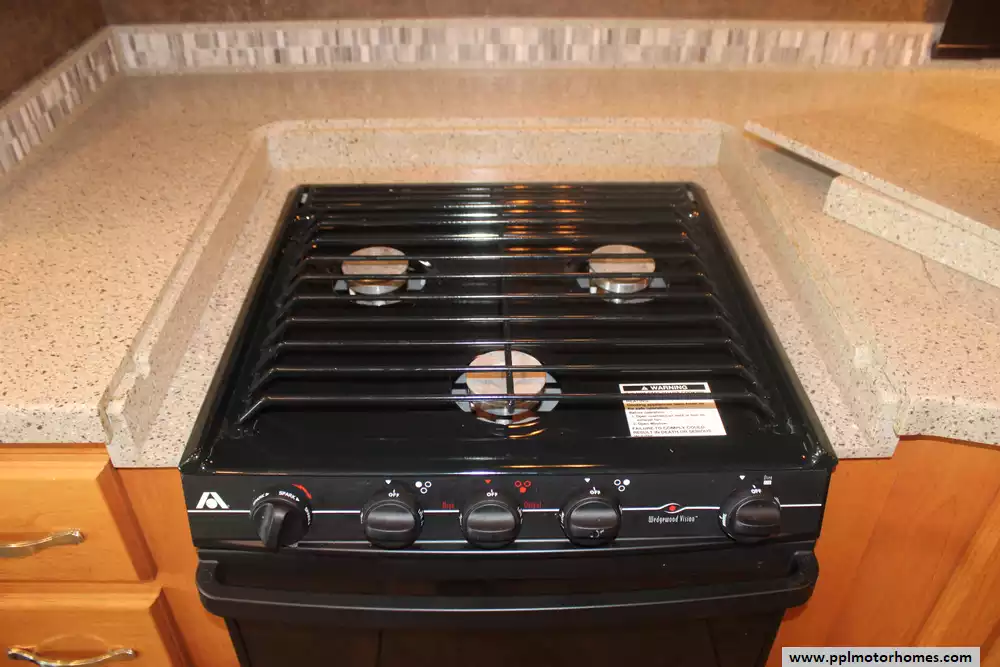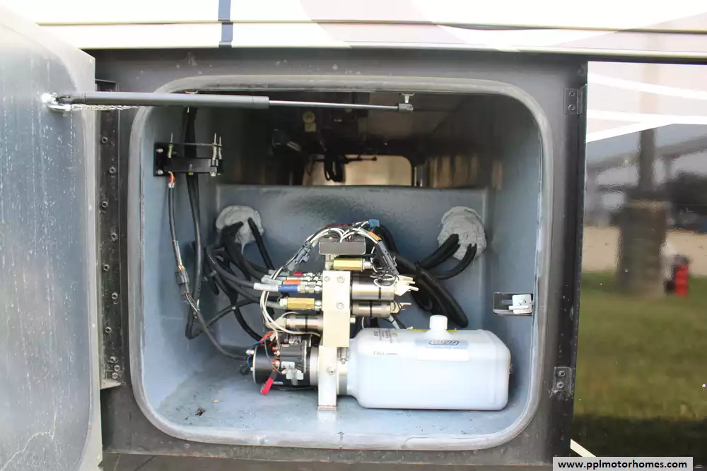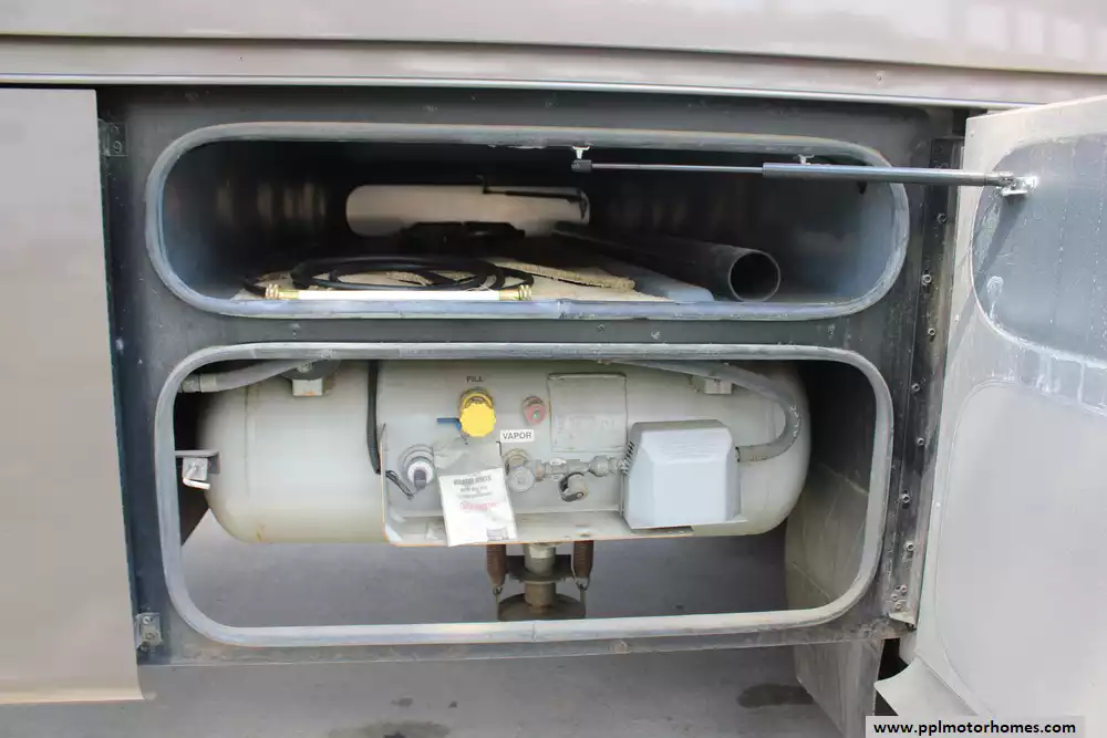 Specs: Length: 35.83 ft., Width: 8.42 ft., Height: 12.83 ft., Interior Height: 6.96 ft., Fuel Capacity: 80 gal., Total Fresh Water Tank Capacity: 70 gal., Total Gray Water Tank Capacity: 66 gal., Total Black Water Tank Capacity: 50 gal., Number of Propane Tanks: 1, Total Propane Tank Capacity: 102 lbs.