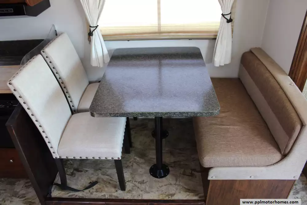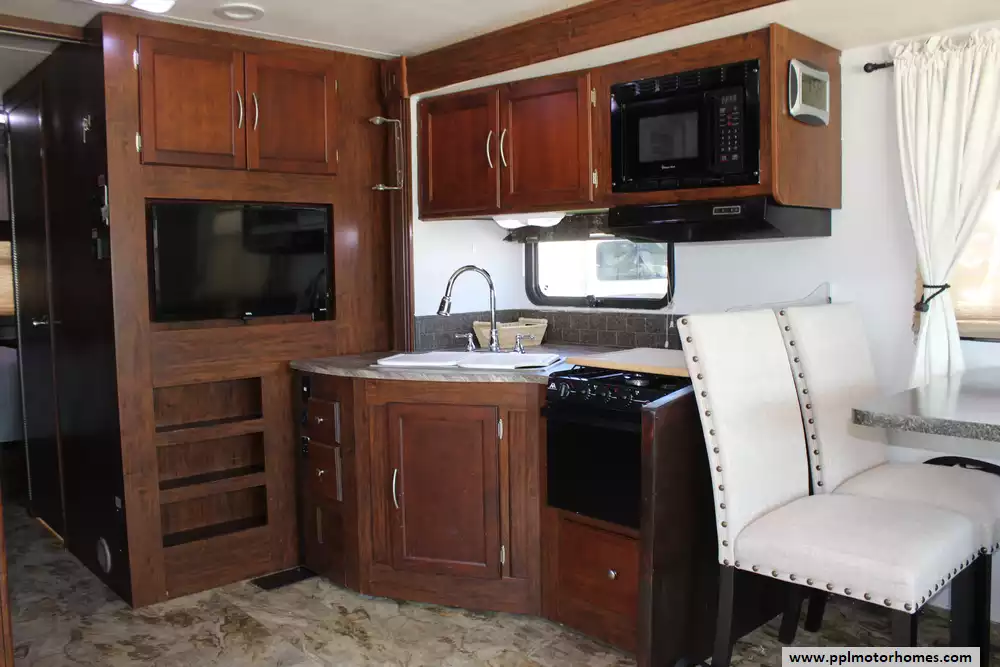 Specs: Length: 32.5 ft., Width: 8.5 ft., Height: 11.92 ft., Interior Height: 7 ft., Fuel Capacity: 80 gal., Total Fresh Water Tank Capacity: 50 gal., Total Gray Water Tank Capacity: 40 gal., Total Black Water Tank Capacity: 28 gal., Number of Propane Tanks: 1, Total Propane Tank Capacity: 85 lbs.