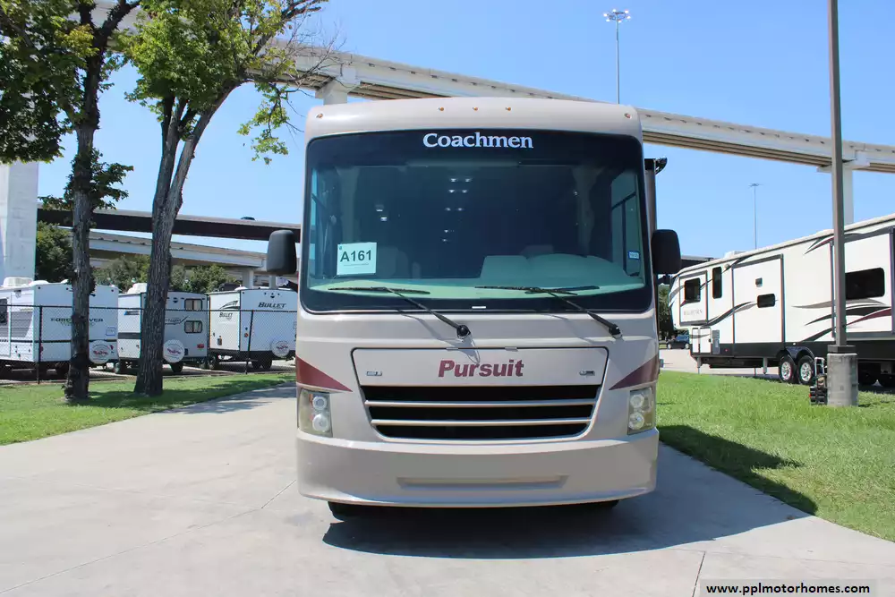 This 2016 Coachmen Pursuit 29SBP is ideal for families or groups. Features Include...V10 Ford Engine On a Ford Chassis, 2 Slide-outs, Onan Gas Generator, 2 Ducted Air Conditioners, Levelers, Double Door Gas/110v Dometic Refrigerator, Automatic Main Awning, Backup Camera, Outside Entertainment System, 2 TVs, DVD Player, Outside Shower, Microwave, 3 Burner Range, and Oven.
