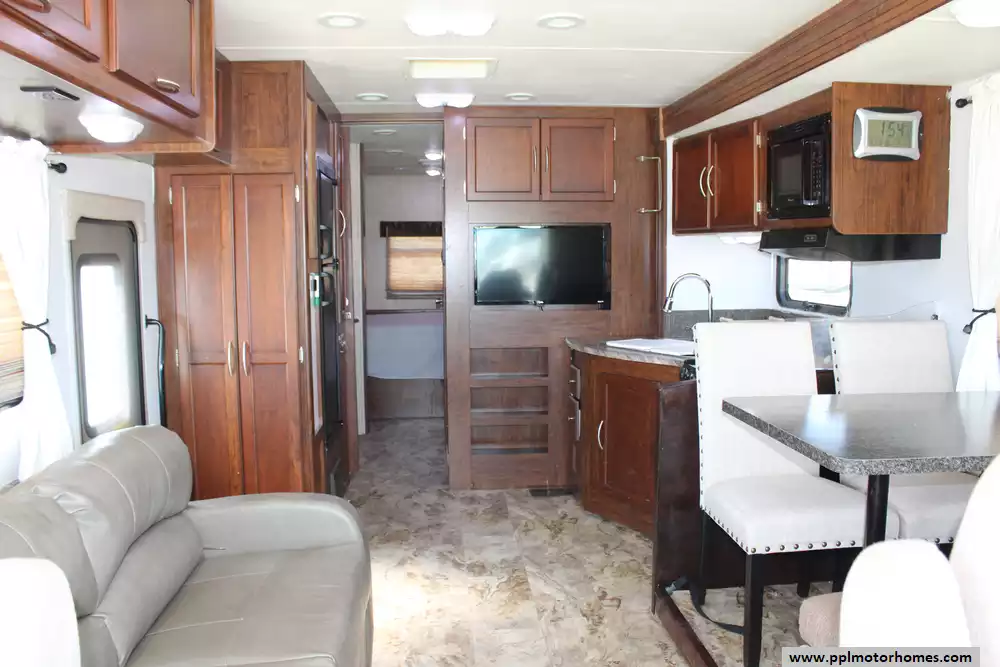 (Floor plan is NOT drawn to scale. Length of vehicle is approximate. Buyer is responsible for verifying actual length. PPL Motor Homes compiled this list of features, specifications, equipment and options as a guide. No representation or warranties, either express or implied, are made as to the accuracy of the information herein. Please verify for yourself all items listed before purchase.)