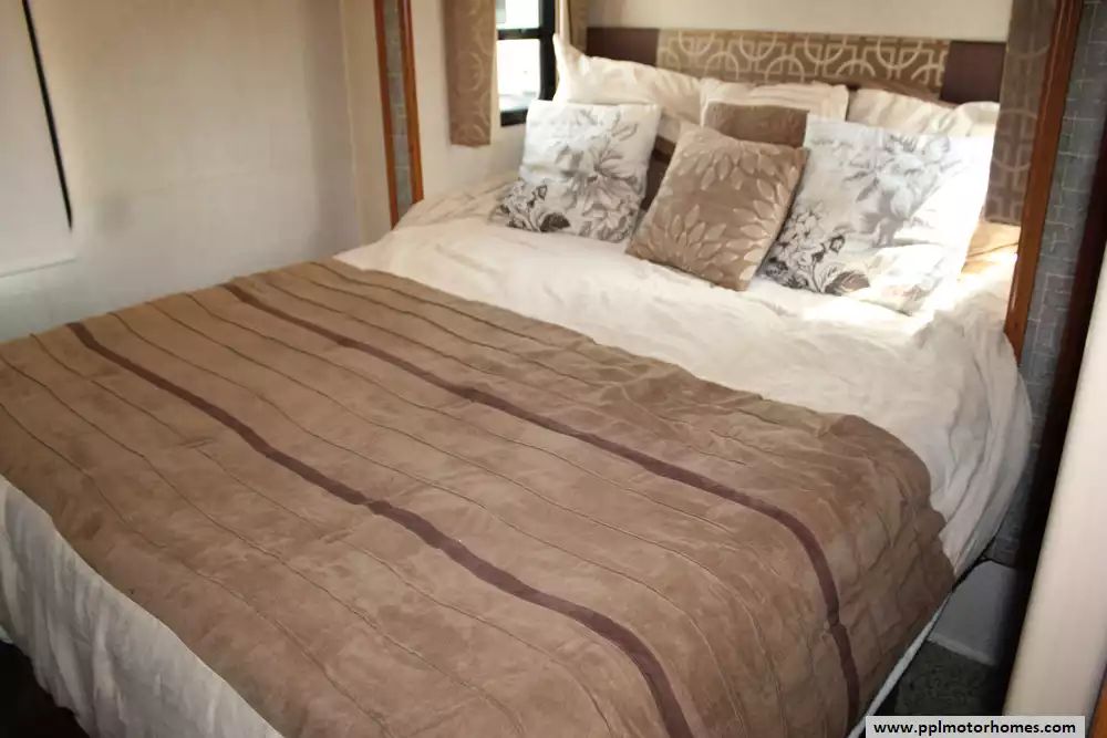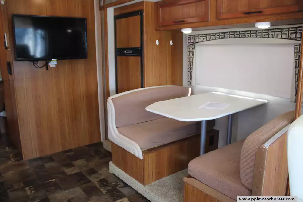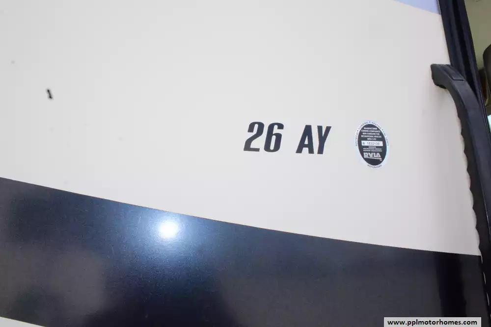Inside, the coach includes a fully equipped kitchen with a three-burner stove, microwave, and mid-size refrigerator, as well as a full bathroom with a shower and ample storage. With amenities like a 15,000 BTU air conditioner, generator, power awning, and modern entertainment options, the Alante 26Y balances drivability, comfort, and convenience, making it a popular choice for both short getaways and extended road trips.