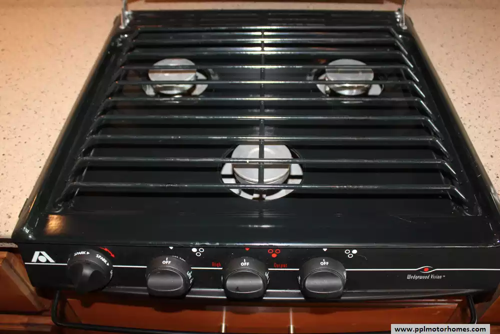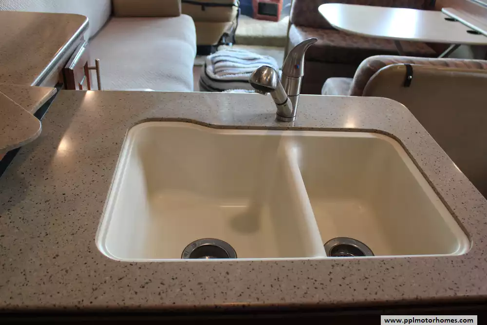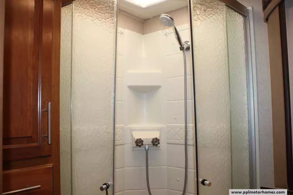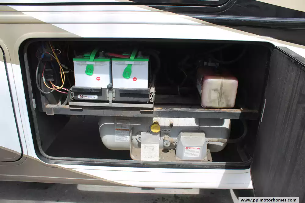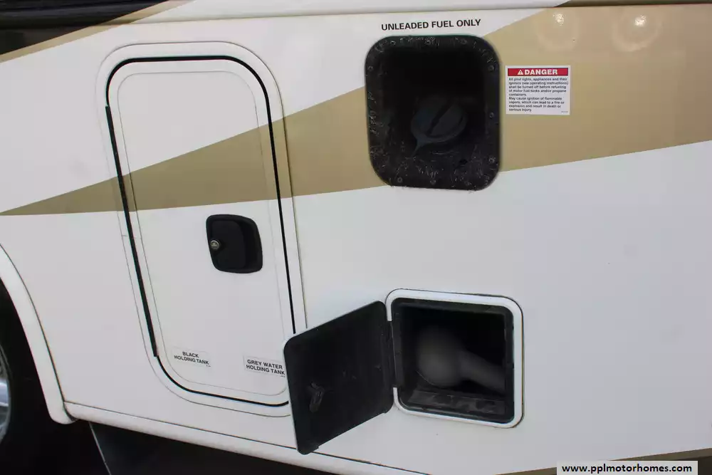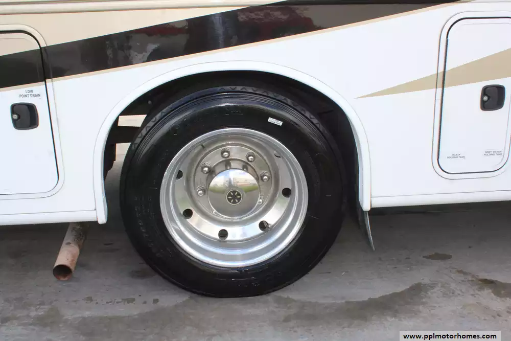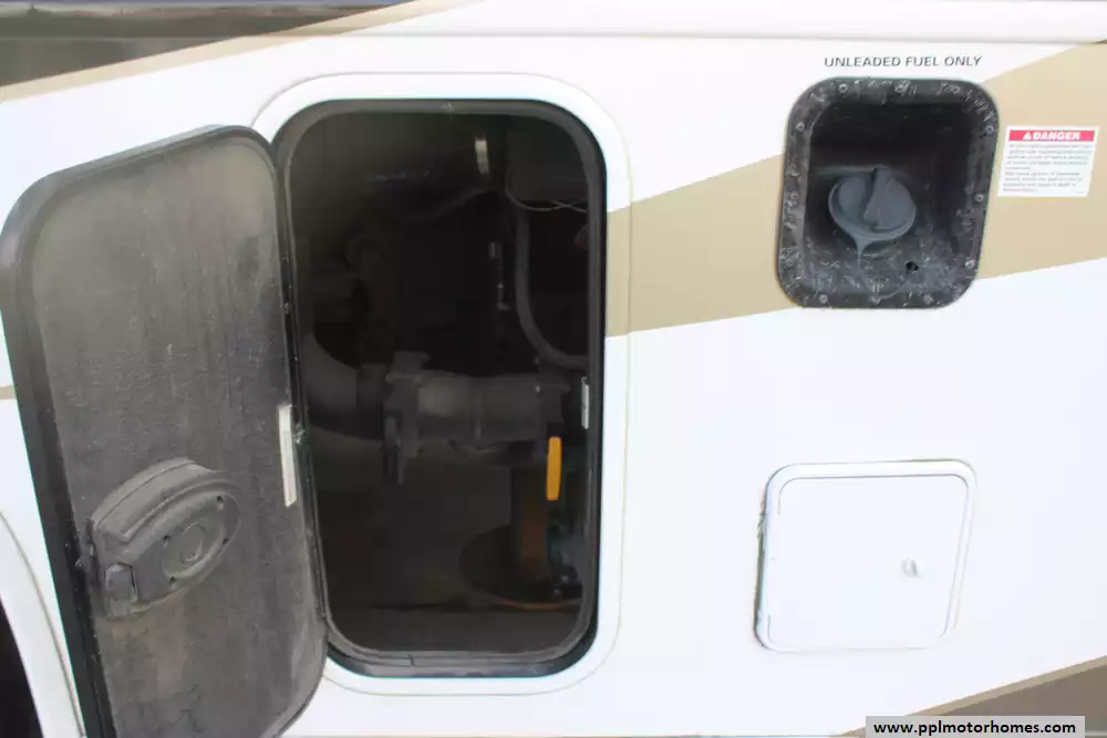 Specs: Length: 35.10 ft., Width: 8.42 ft., Height: 12.58 ft., Interior Height: 7 ft., Fuel Capacity: 80 gal., Total Fresh Water Tank Capacity: 77 gal., Total Gray Water Tank Capacity: 40 gal., Total Black Water Tank Capacity: 50 gal.
