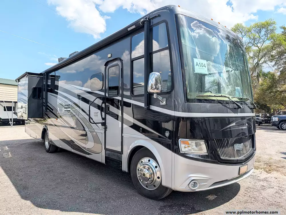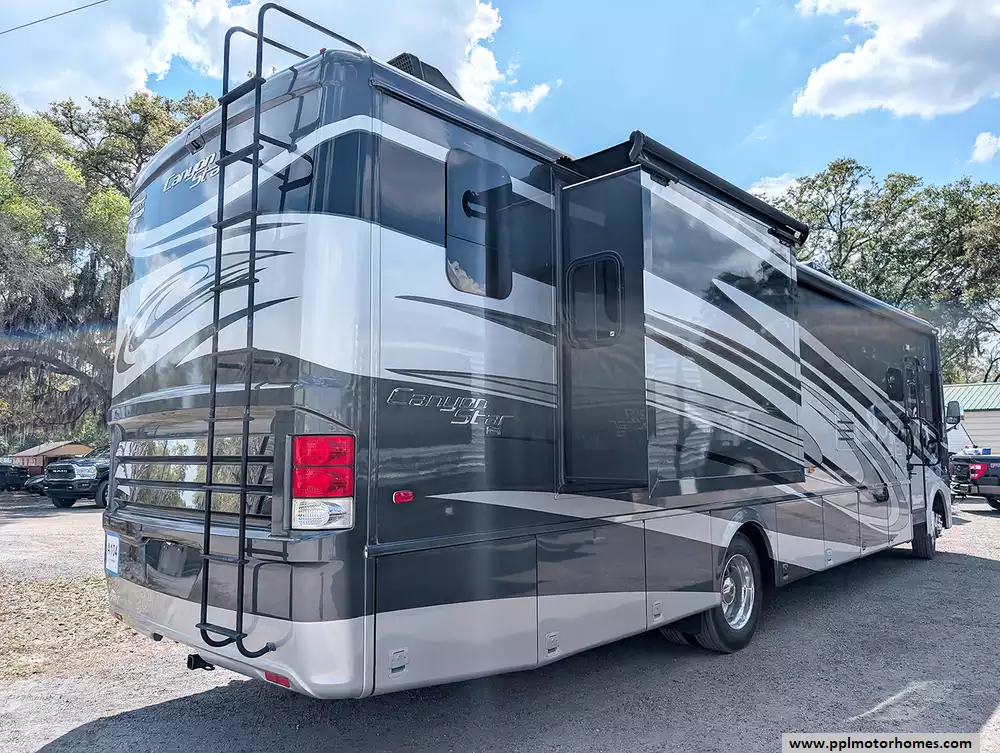 Experience the perfect blend of luxury and rugged reliability with this 2016 Canyon Star 3710. Built on a heavy-duty Ford chassis and powered by the dependable 6.8L V10 engine, this 37-foot Class A motorhome is widely respected for its solid construction and smooth highway manners. The fiberglass exterior and durable TPO roof house a meticulously designed living space, featuring two large slide-outs that significantly expand your floor plan for ultimate comfort. Whether you are navigating steep grades or settling into a scenic campsite, the automatic leveling system and backup camera ensure a seamless, stress-free experience from the moment you get behind the wheel.