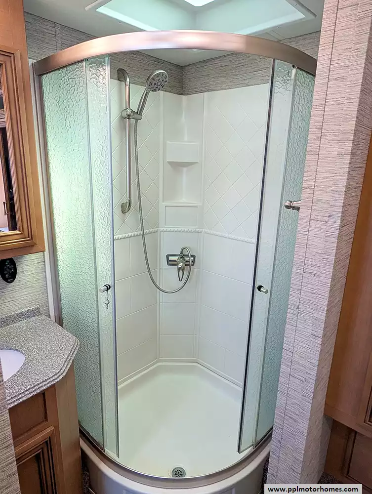 Inside, the Canyon Star 3710 offers premium residential-style amenities that make long-term travel effortless. The kitchen is fully equipped with a GE residential refrigerator, a three-burner range, and a convection microwave, while the central vacuum system and washer/dryer connections add a level of convenience rarely found in gas coaches. Stay entertained with three TVs and a satellite receiver, or enjoy the outdoors under the automatic main awning. Designed for all-season adventure, this motorhome features heated tanks for cold-weather protection, combined with an Onan gas generator for reliable off-grid power. From the ducted air conditioning to the convenient outside shower, every detail of this motorhome is engineered to provide a first-class travel experience.