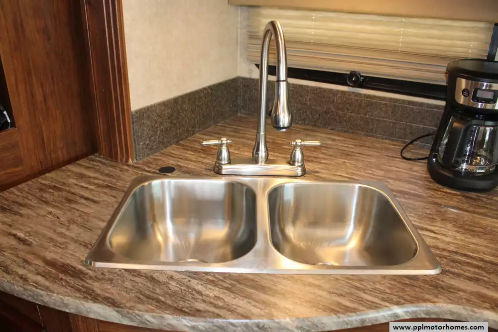 Specs: Length: 33 ft., Width: 8.5 ft., Height: 12 ft., Total Fresh Water Tank Capacity: 50 gal., Total Grey Tank Capacity: 40 gal., Total Black Water Tank Capacity: 28 gal., Total Propane Tank Capacity: 20 gal.