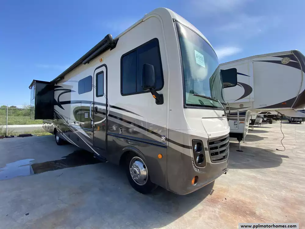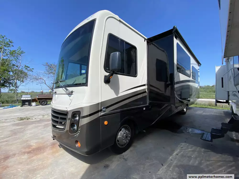This 2017 Vacationer Xe 34S has a V-10 6.8l Ford Engine On a Ford Chassis, 2 Slide-outs, Onan Gas Generator, 2 Ducted Air Conditioners, Levelers, Double Door Residential Whirlpool Refrigerator, In-Fridge Ice Maker, Automatic Main Awning And Slide Awning, Backup Camera, Outside Entertainment System, 3 TVs, Satellite Radio, Outside Shower, Fireplace, Convection Microwave, 3 Burner Range
