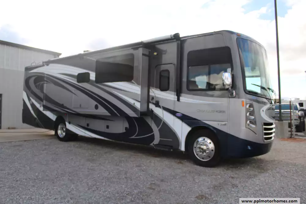 This 2017 Thor Challenger M-37YT has a Tri V10 6.8 L Ford Engine On a Ford Chassis, 3 Slide-outs, Onan Gas Generator, 2 Ducted Air Conditioners, Levelers, Double Door 110v Residential Norcold Refrigerator, In-Fridge Ice Maker, Automatic Main Awning And Slide Awning, Backup Camera, Outside Entertainment System, 3 TVs, Outside Shower, Convection Microwave, 3 Burner Range, Oven