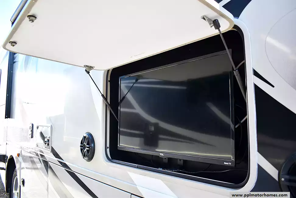 Stay connected and entertained with 3 onboard tv's, a GPS system - change to a Sony Multimedia Receiver with Wireless Apple Car Play/Android auto with GPS, 3 exterior cameras (2 on rearview mirrors and 1 on rear for backing up), as well as a satellite receiver.