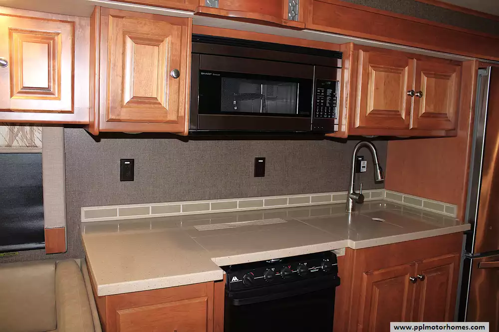 2017 Tiffin Allegro 34PA is a Class A gas motorhome built on a Ford F-Series chassis with a 6.8 L Triton V10 engine producing approximately 320 hp and 460 ft-lbs of torque, paired with a TorqShift-equipped automatic transmission. This robust drivetrain gives the coach confident highway performance and reliability typical of Ford-powered Allegros of this era. The 34PA also includes multiple slide-outs that expand living space and make extended trips feel like home.