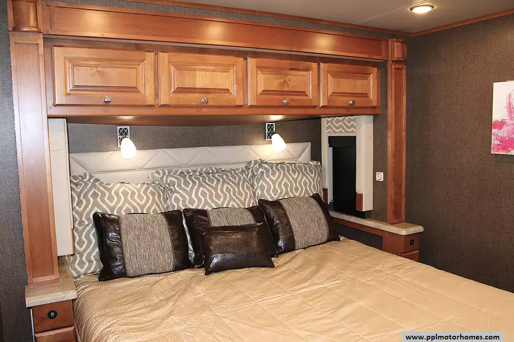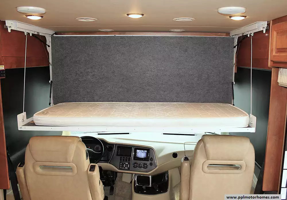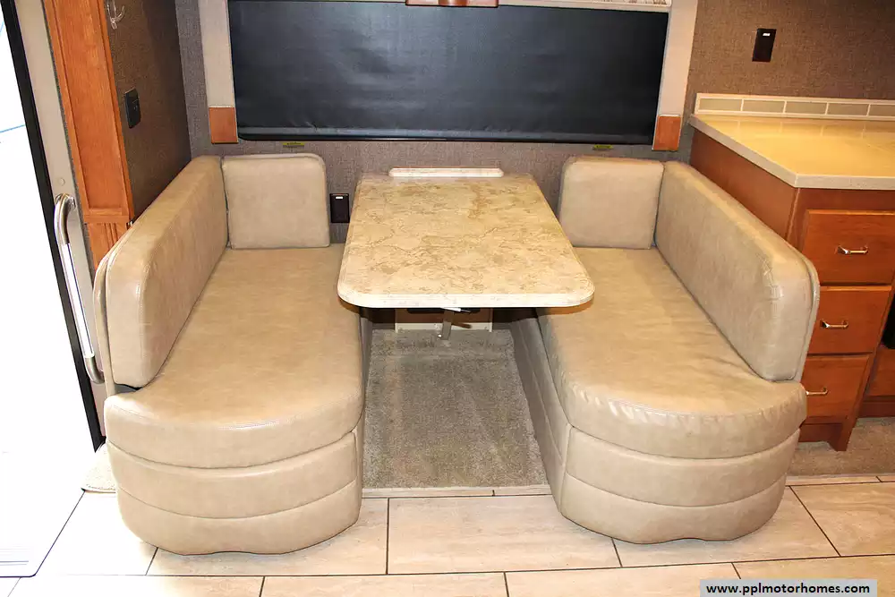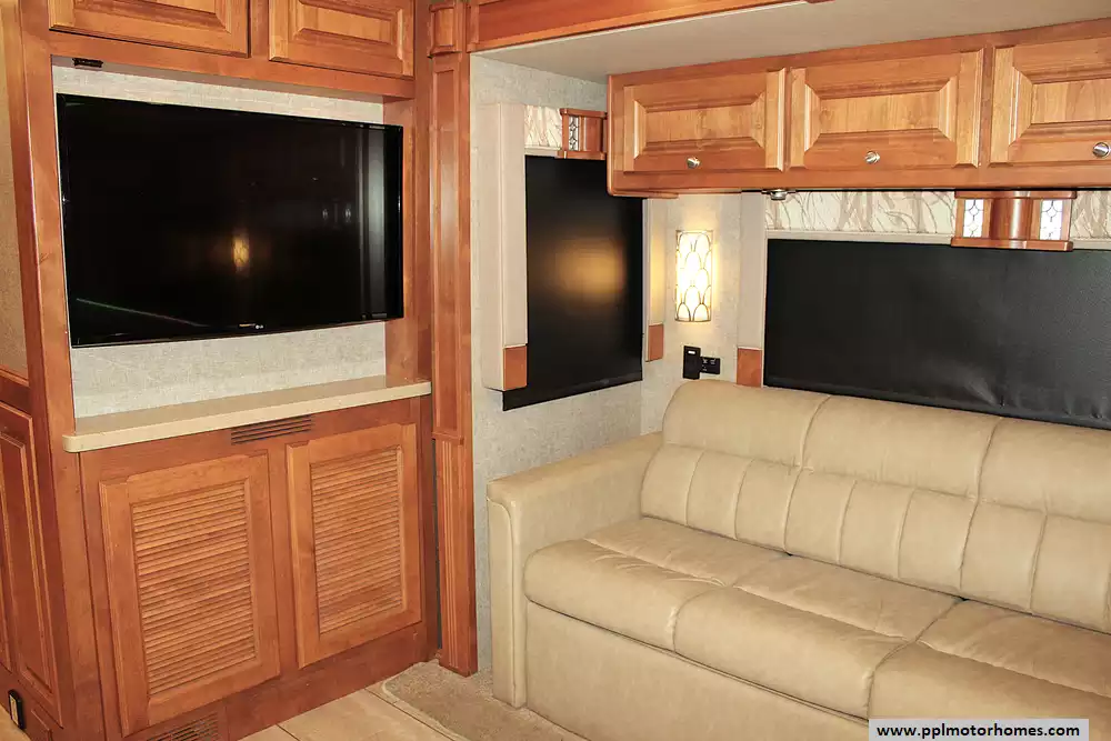 Inside, the Allegro 34PA is designed to sleep between 5 and 6 people comfortably, depending on configuration and optional bedding arrangements. The layout typically includes a dedicated bedroom with a queen bed, convertible sofa/dinette areas, and space for overnight guests. Its thoughtful accommodation makes it well suited for couples, families, or groups who want to enjoy road travel without sacrificing livability.