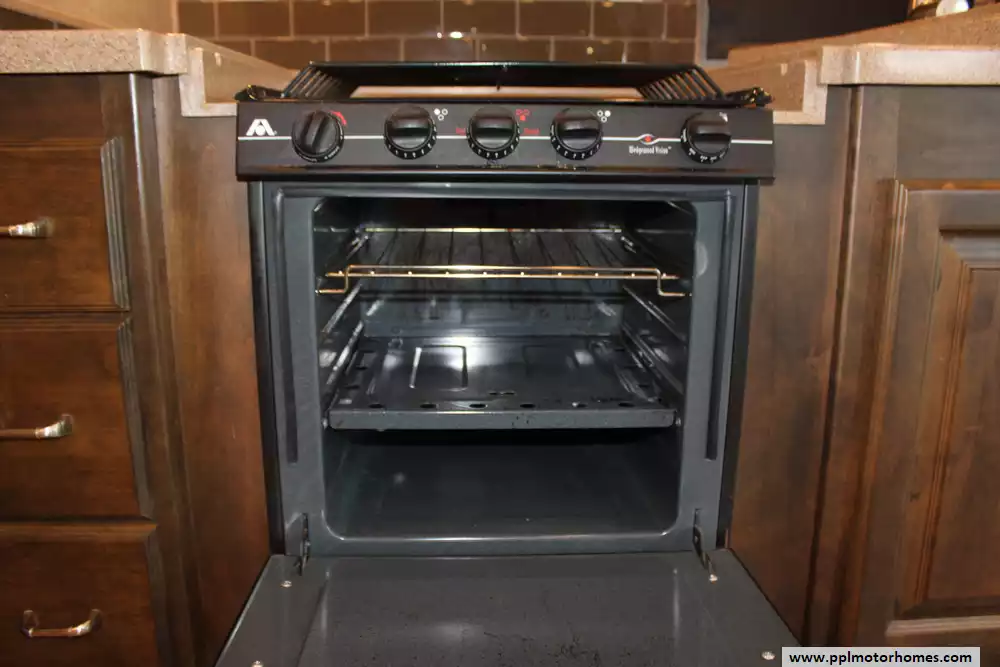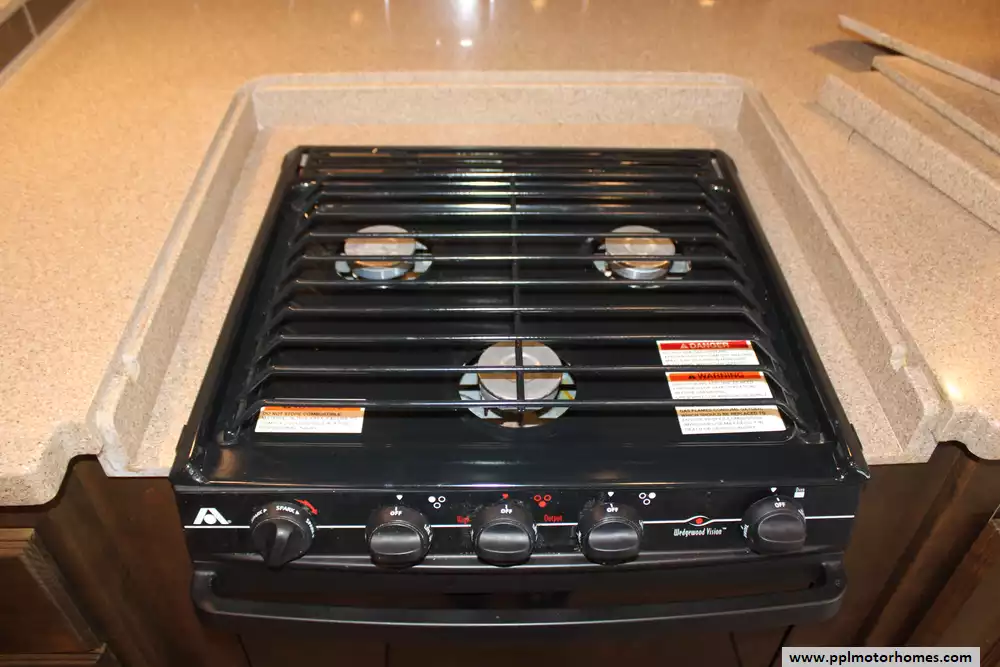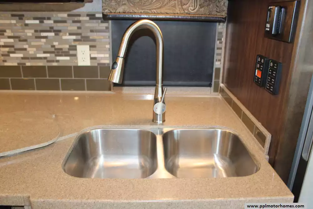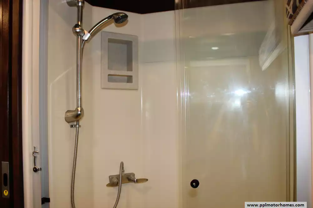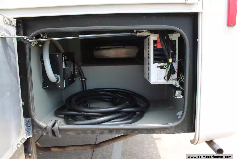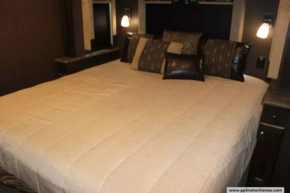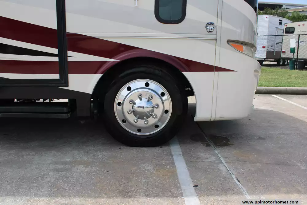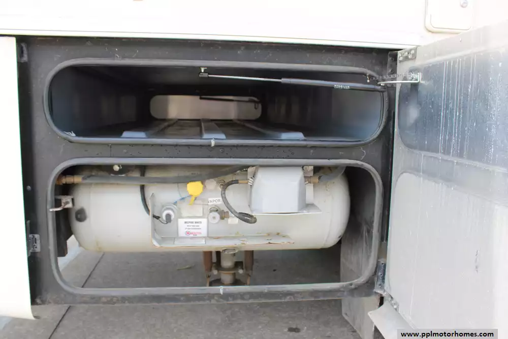 Specs: Length: 33 ft., Width: 8.42 ft., Height: 12.83 ft., Interior Height: 7 ft. Fuel Capacity: 80 gal., Total Fresh Water Tank Capacity: 70 gal., Total Gray Water Tank Capacity: 66 gal., Total Black Water Tank Capacity: 50 gal., Number of Propane Tanks: 1, Total Propane Tank Capacity: 102 lbs.