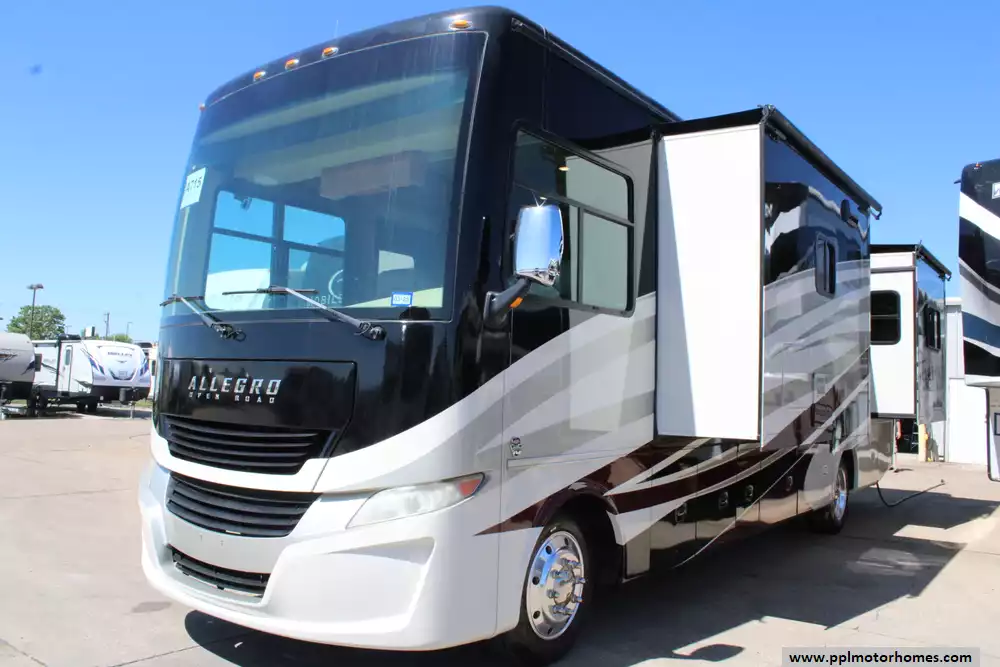 This 2017 Open Road Allegro 31MA By Tiffin Features...6.8 L Ford Engine On A Ford Chassis, 3 Slide-Outs, Onan Gas Generator, Levelers, Double Door 110v Lg Refrigerator, In-Fridge Ice Maker, Automatic Main Awning And Slide Awning, Backup Camera, GPS System, Solar Panel, Outside Entertainment System, 4 TVs, Satellite Radio, Outside Shower, Fireplace, Central Vacuum, Microwave, 3 Burner Range, Oven, Memory Foam Matress And Much More! Ask About PPL's Financing Options!