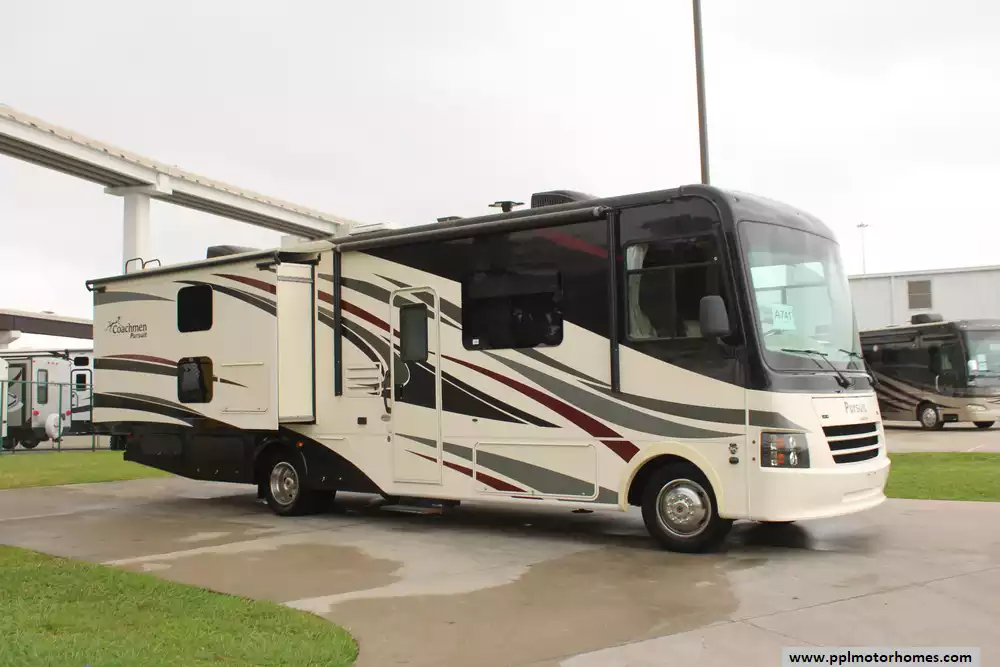 This 2018 Pursuit 33BHP is a stylish and spacious motorhome designed for comfort and luxury during extended travels or family vacations.It offers a blend of premium features and thoughtful design, making it an ideal choice for discerning RV enthusiasts.Features Include...V10 Ford Engine On a Ford Chassis, 2 Slide-outs, Onan Gas Generator, 2 Ducted Air Conditioners, Levelers, Double Door Gas/110v Dometic Refrigerator, Automatic Main Awning And Slide Awning, Backup Camera, Outside Entertainment System, 3 TVs, DVD Player, Microwave, 3 Burner Range,and Oven.It exemplifies luxury and functionality,offering a spacious and well-appointed living space for travelers seeking comfort and convenience on their adventures.With its premium amenities and thoughtful design,this model promises a memorable and enjoyable RV experience for families and individuals alike.