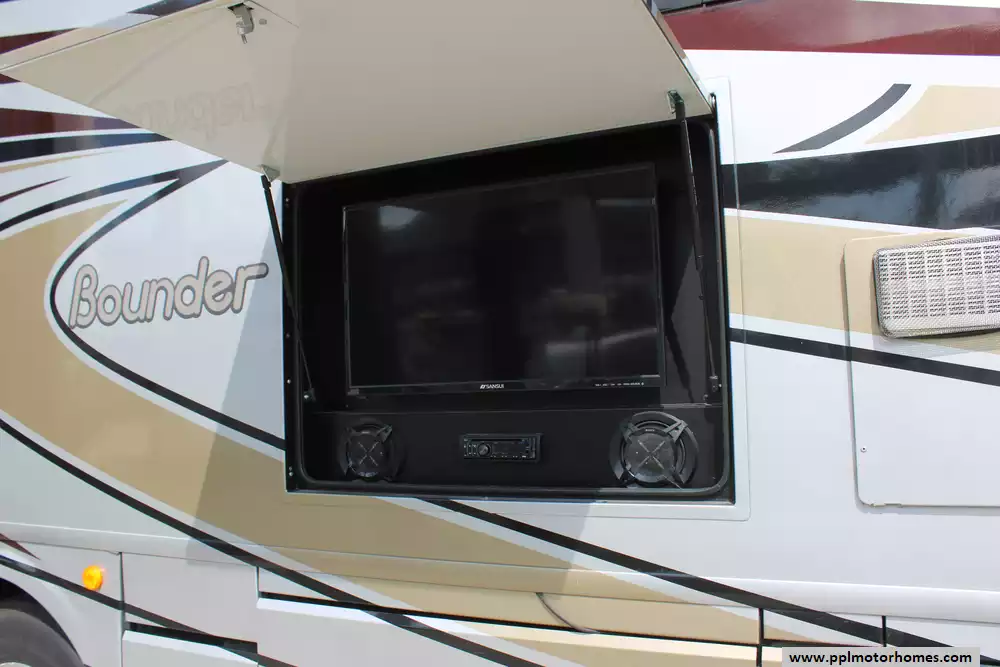 This 2018 Bounder 35P is designed for comfortable family travel with spacious living areas and a well-appointed interior. Amenities Include...6.8l V10 Ford Engine On a Ford Chassis, 4 Slide-outs, Onan Gas Generator, 2 Ducted Air Conditioners, Levelers, Samsung Refrigerator, In-Fridge Ice Maker, Automatic Main Awning And Slide Awning, Washer/Dryer, Backup Camera, Solar Panel, Heated Tanks, Satellite Dish & Receiver, Outside Entertainment System, 3 TVs, Satellite Radio, Outside Shower, Convection Microwave, and 3 Burner Range.