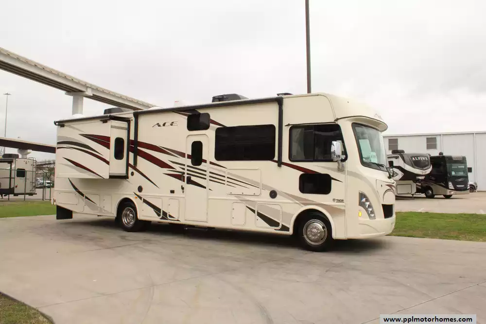 This 2018 ACE 32.1 blends luxury with practicality, offering a spacious and comfortable living environment for travelers seeking adventure on the road. With its sleek design and abundance of amenities, this motorhome stands out in the crowded RV market..Features Include...A V10 Ford Engine On a Ford Chassis, 2 Slide-outs, Onan Gas Generator, 2 Ducted Air Conditioners, Levelers, Double Door 110v Residential Refrigerator, Automatic Main Awning, Heated Tanks, Outside Entertainment System, 3 TVs, DVD Player, Outside Shower, Microwave, 3 Burner Range,and Oven.This is a top-of-the-line motorhome that combines luxury, comfort, and performance in a stylish package. Whether embarking on a weekend getaway or a cross-country road trip, this RV offers the perfect blend of amenities and convenience for travelers seeking the ultimate mobile lifestyle.