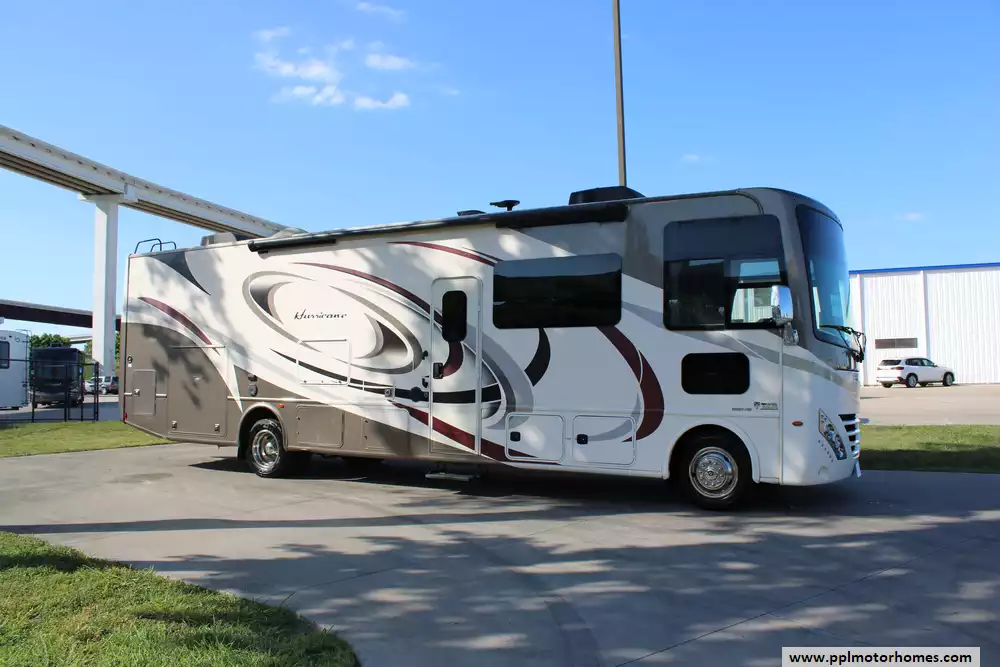 This 2018 Hurricane 34J is designed for families and travelers who want a spacious and feature-packed RV.This motorhome provides plenty of power for long trips.It offers a well-thought-out floor plan with plenty of sleeping and storage options. Features Include...V10 6.8l Ford Engine On a Ford Chassis, 1 Slide-out, Onan Gas Generator,2 Ducted Air Conditioners,Levelers,Double Door Residential Whirlpool Refrigerator,In-Fridge Ice Maker,Automatic Main Awning,Backup Camera, Heated Tanks,Outside Entertainment System,3 TVs,DVD Player,Outdoor Kitchen,Outside Shower,Microwave,3 Burner Range,and Oven.With its family-friendly bunkhouse layout, spacious interior,and solid construction,this is a great choice for those seeking comfort and convenience in a motorhome.