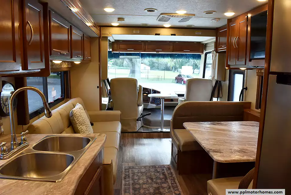 (Floor plan is NOT drawn to scale. Length of vehicle is approximate. Buyer is responsible for verifying actual length. PPL Motor Homes compiled this list of features, specifications, equipment and options as a guide. No representation or warranties, either express or implied, are made as to the accuracy of the information herein. Please verify for yourself all items listed before purchase.)