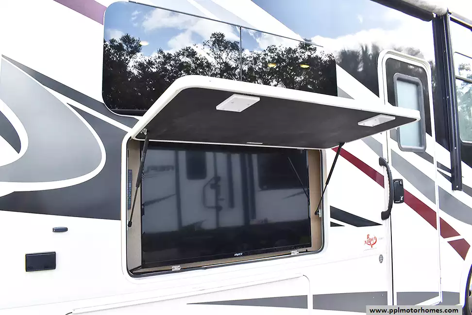 This 2019 Pursuit Series 32WCP has a Triton V10 Ford Engine On a Ford Chassis, 2 Slide-outs, Onan Gas Generator, 2 Ducted Air Conditioners, Levelers, Double Door 12v Refrigerator, Automatic Main Awning And Slide Awning, Washer/Dryer Connections, Backup Camera, Solar Panel, Satellite Receiver, Outside Entertainment System, 4 TVs, 2 DVD Players, Microwave, 3 Burner Range, Oven